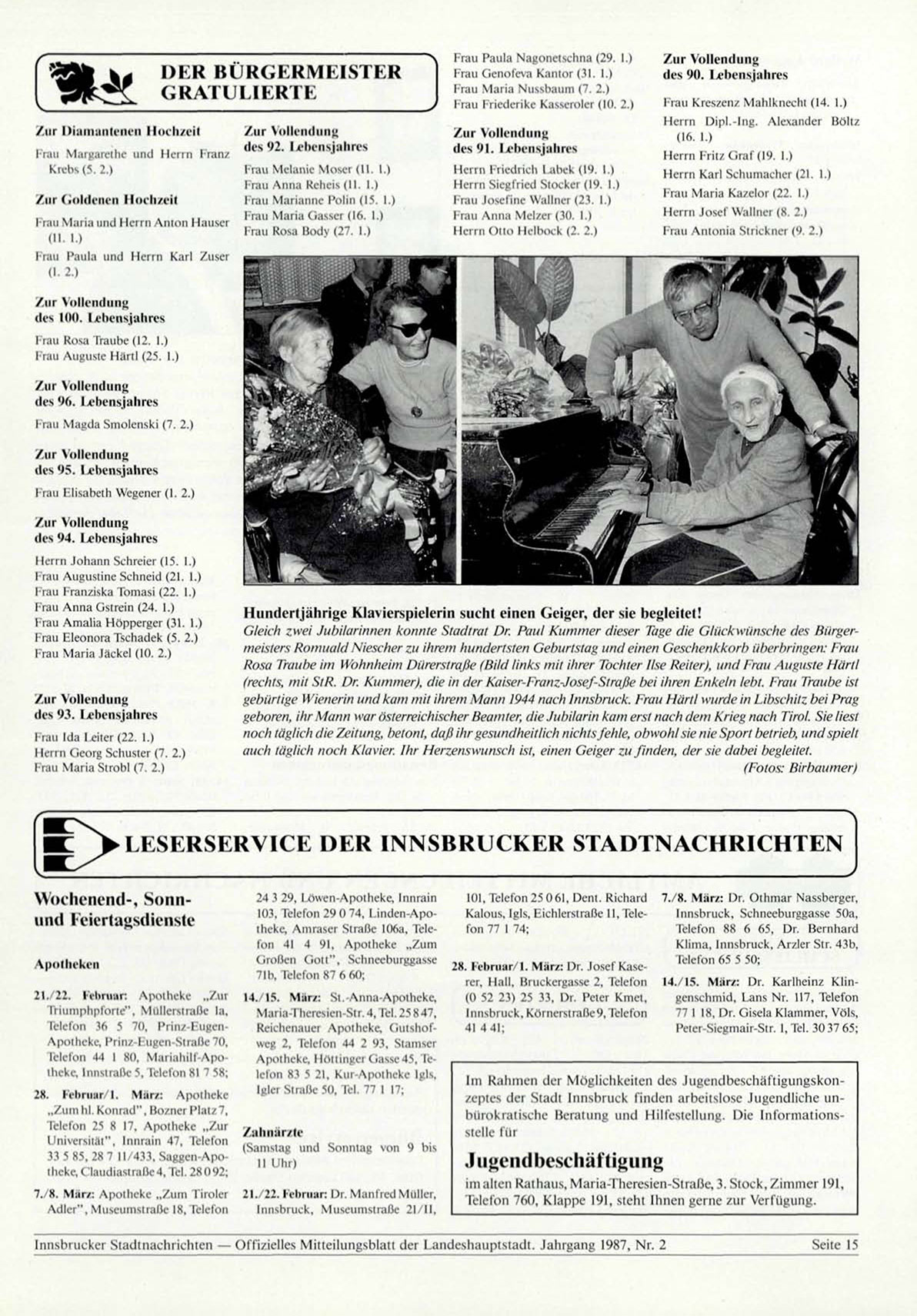(rechts, mit StR. Dr. Kummer), die in der Kaiser-Franz-Josef-Straße bei ihren Enkeln lebt. Frau Traube ist
