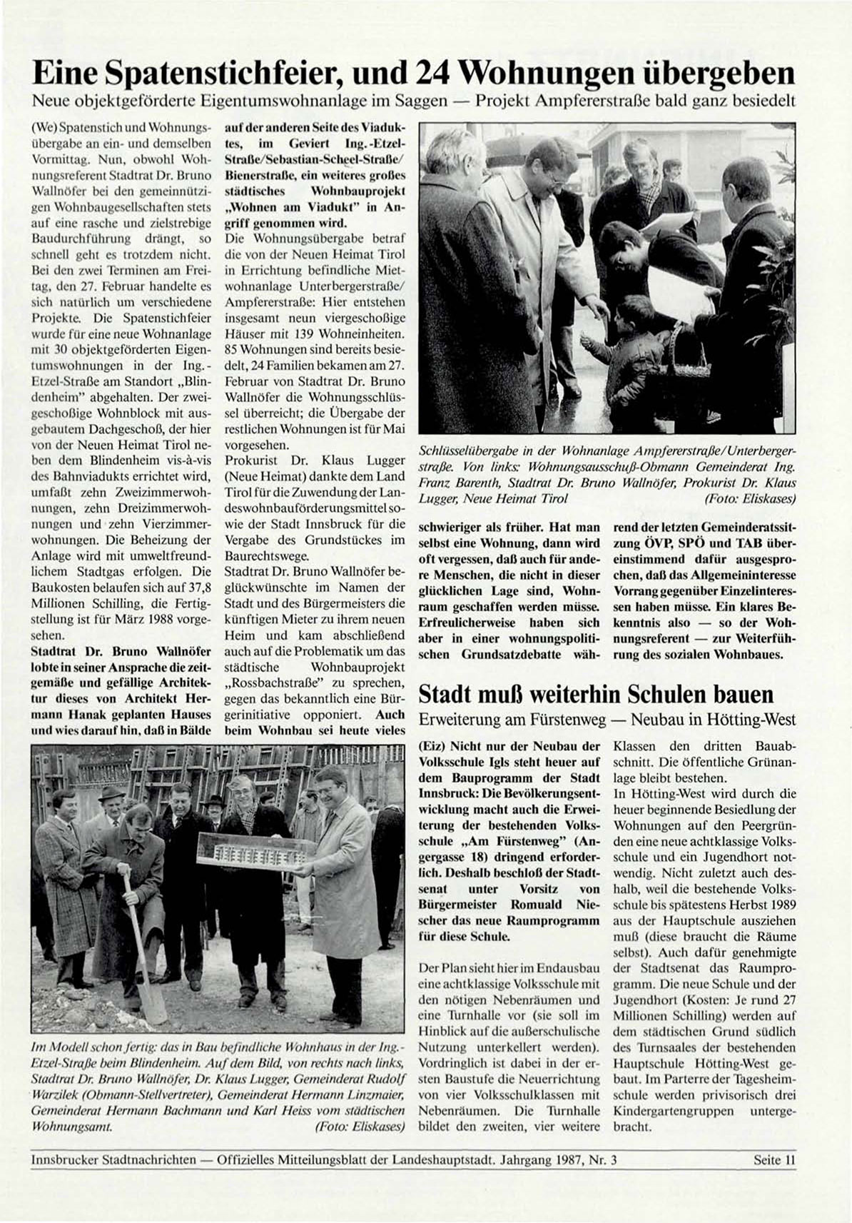 mit 30 objektgeförderten Eigentumswohnungen in der Ing.Ltzel-Straße am Standort „Blindenheim" abgehalten. Der zweigeschoßige Wohnblock mit ausgebautem Dachgeschoß, der hier