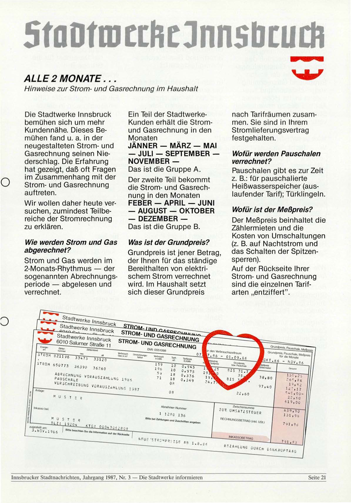 Innsbrucker Stadtnachrichten, Jahrgang 1987, Nr. 3 — Die Stadtwerke informieren