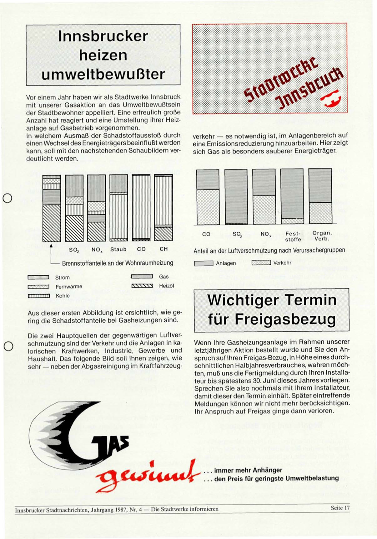Innsbrucker Stadtnachrichten, Jahrgang 1987, Nr. 4 — Die Stadtwerke informieren