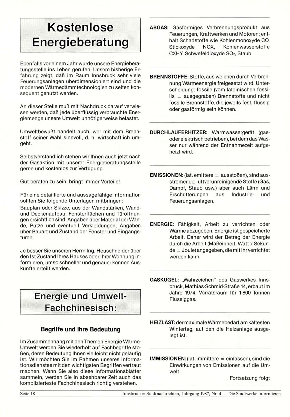 Innsbrucker Stadtnachrichten, Jahrgang 1987, Nr. 4 — Die Stadtwerke informieren