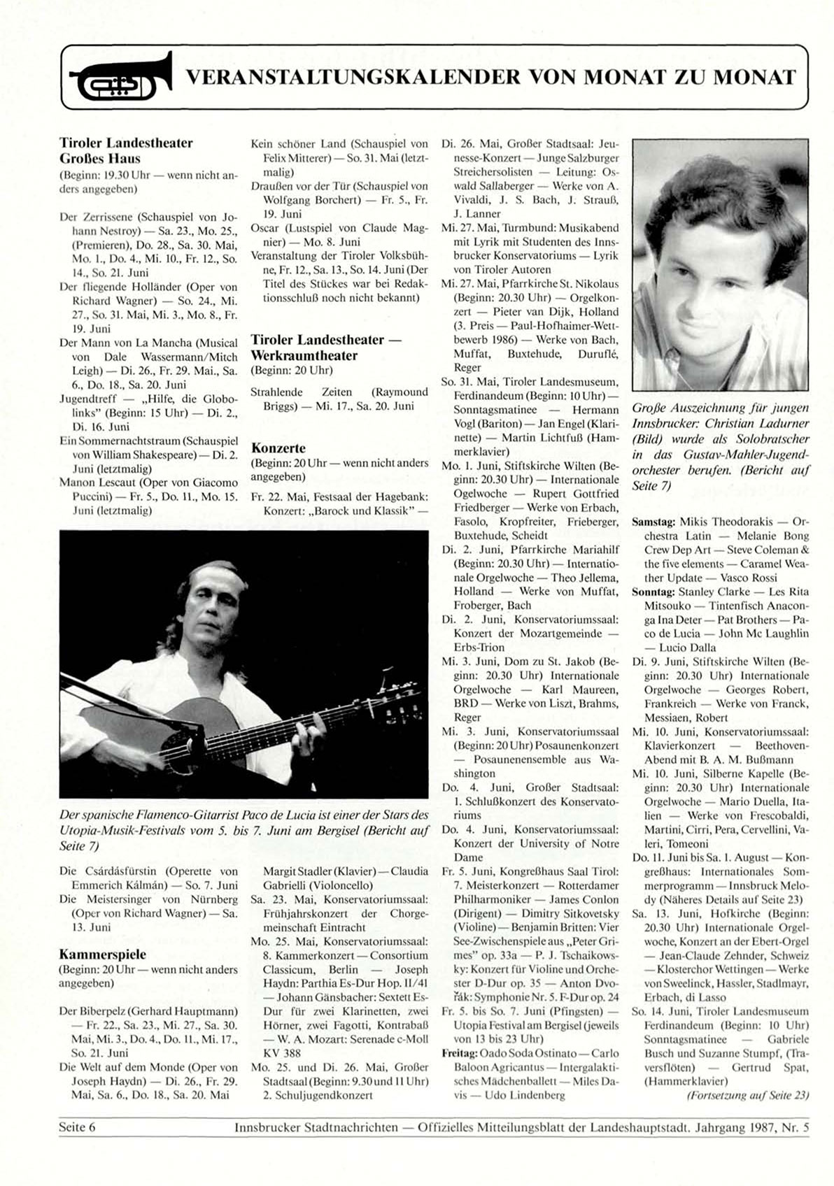Innsbrucker Stadtnachrichten — Offizielles Mitteilungsblatt der Landeshauptstadt. Jahrgang 1987, Nr. 5