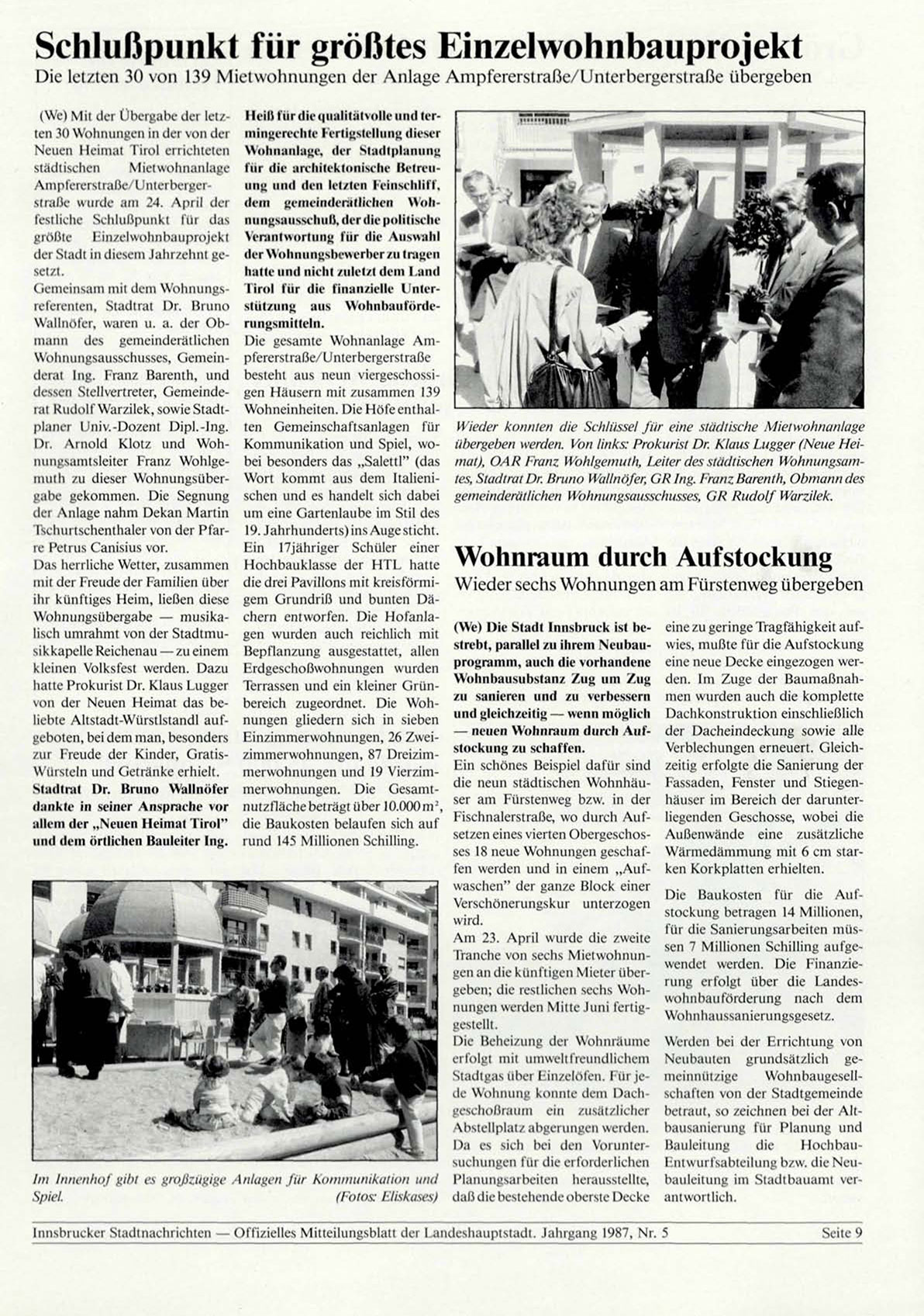 Innsbrucker Stadtnachrichten — Offizielles Mitteilungsblatt der Landeshauptstadt. Jahrgang 1987, Nr. 5