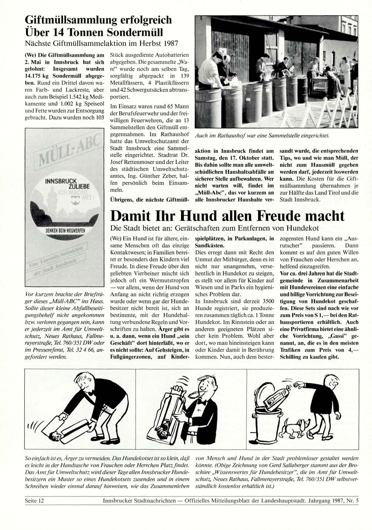 Innsbrucker Stadtnachrichten — Offizielles Mitteilungsblatt der Landeshauptstadt. Jahrgang 1987, Nr. 5