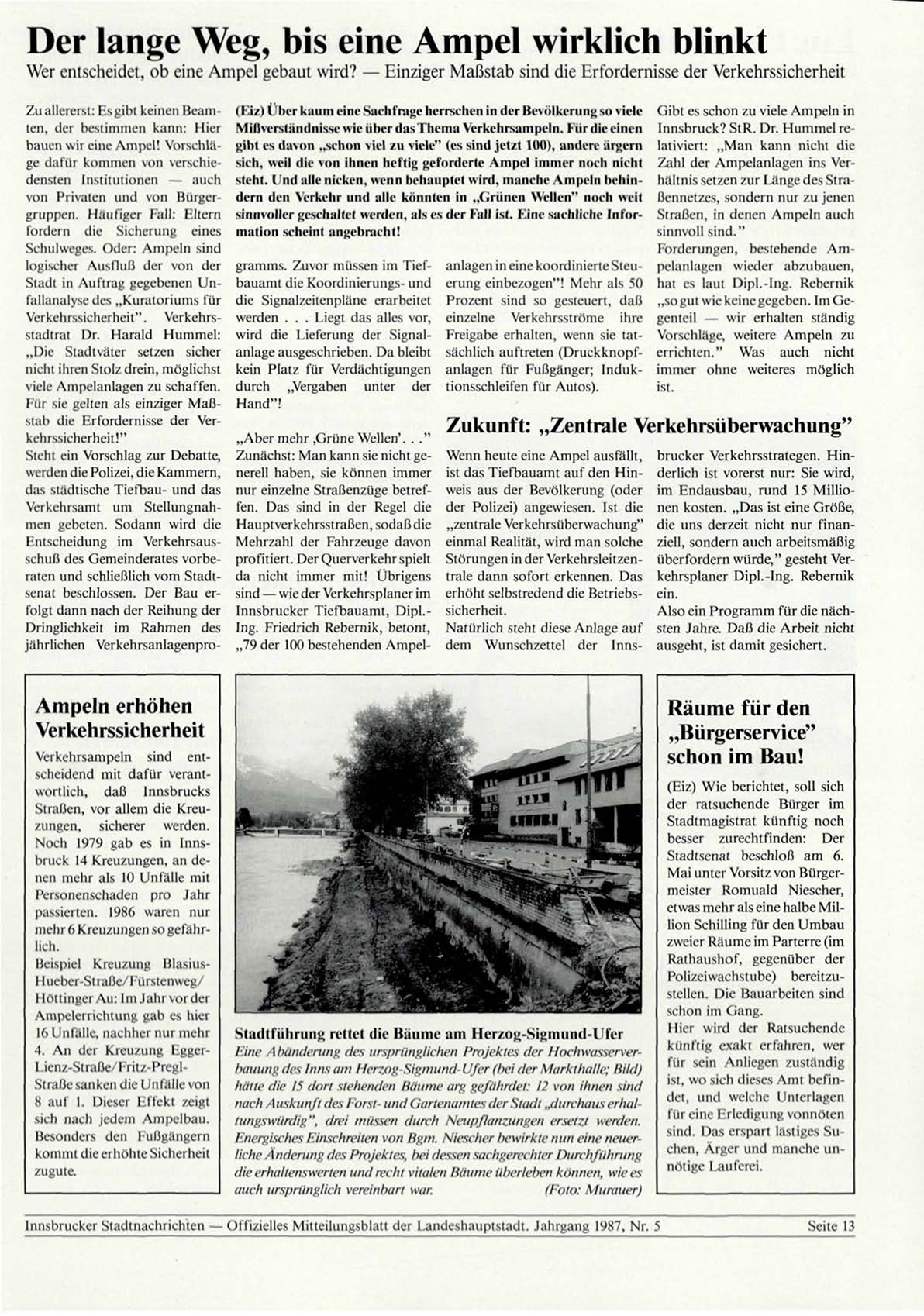 Innsbrucker Stadtnachrichten — Offizielles Mitteilungsblatt der Landeshauptstadt. Jahrgang 1987, Nr. 5