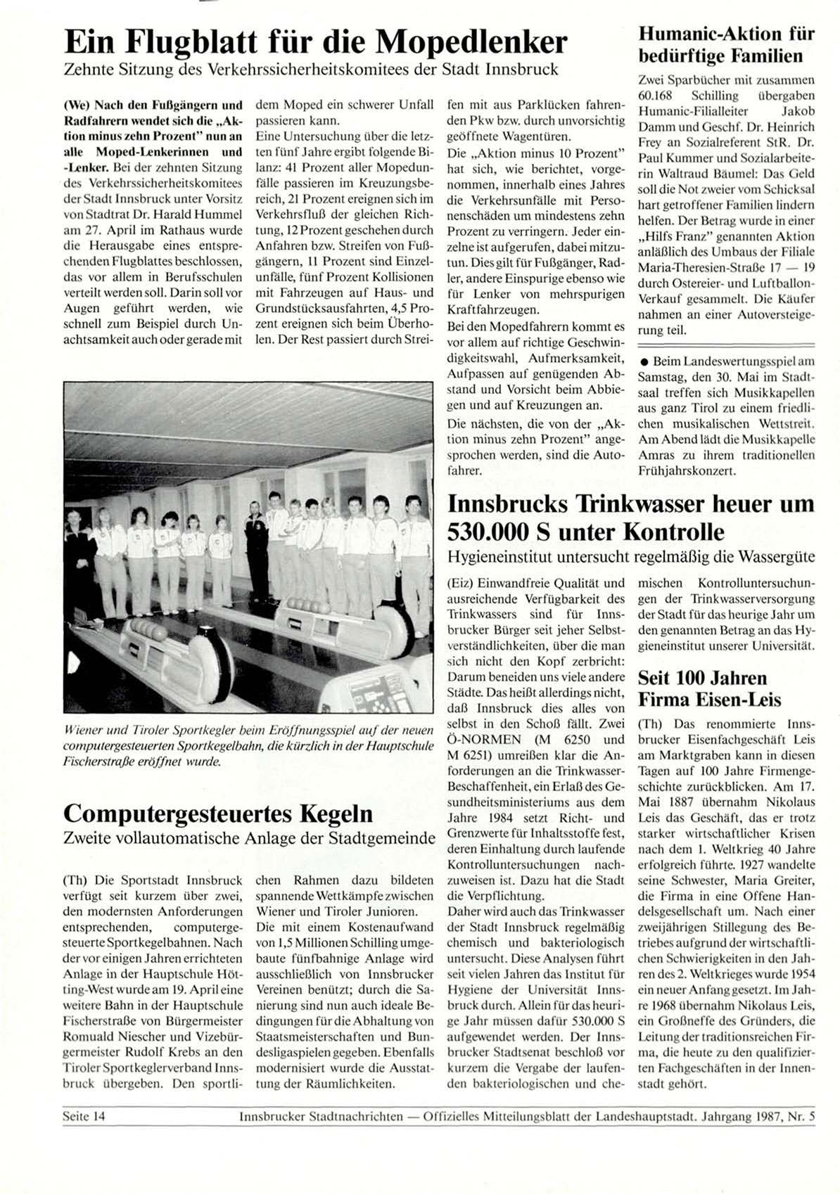 Innsbrueker Stadtnachrichten — Offizielles Mitteilungsblatt der Landeshauptstadt. Jahrgang 1987, Nr. 5