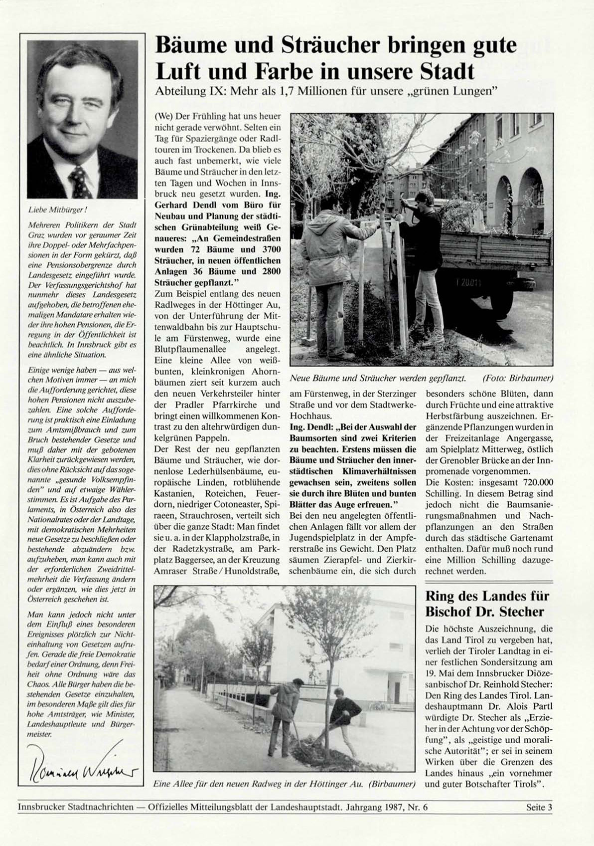Innsbrucker Stadtnachrichten — Offizielles Mitteilungsblatt der Landeshauptstadt. Jahrgang 1987, Nr. 6