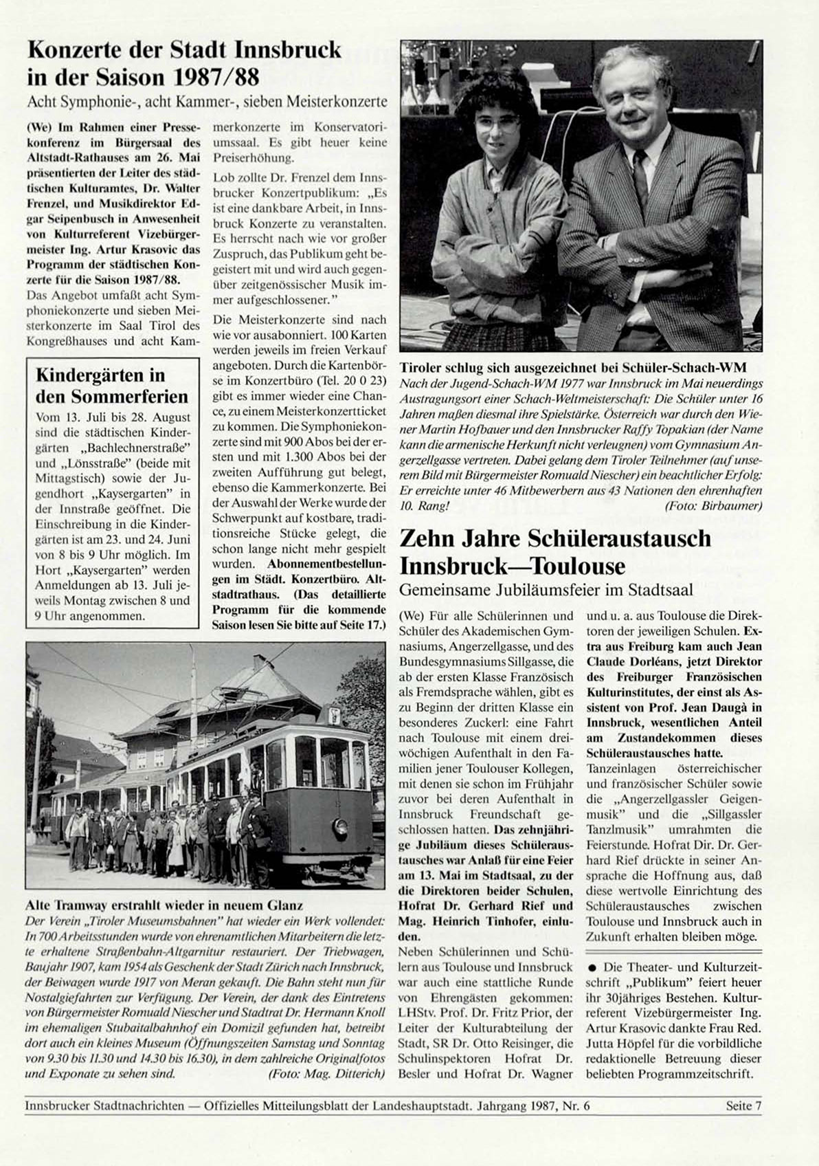 Innsbrucker Stadtnachrichten — Offizielles Mitteilungsblatt der Landeshauptstadt. Jahrgang 1987, Nr. 6
