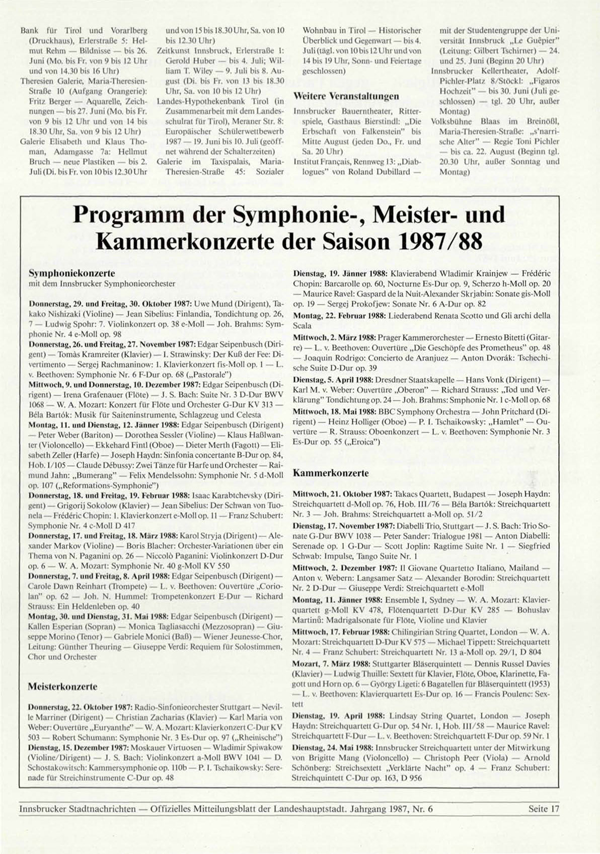 Dienstag, 24. Mai 1988: Innsbrucker Streichquartett unter der Mitwirkung