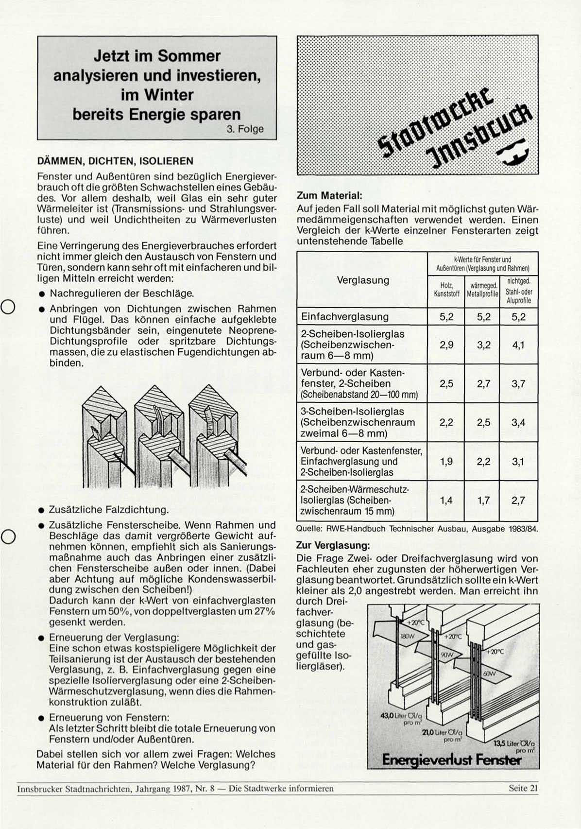 Innsbrucker Stadtnachrichten, Jahrgang 1987, Nr. 8 — Die Stadtwerke informieren