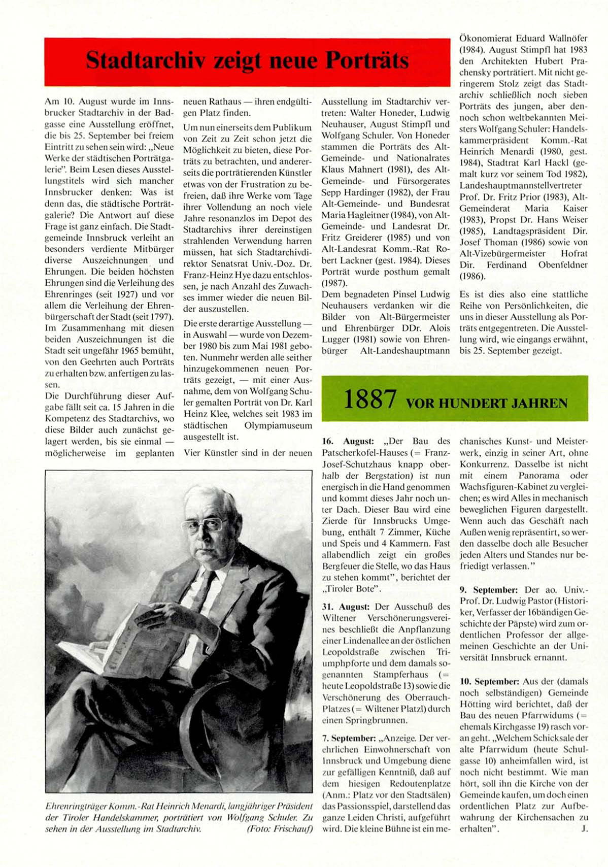 Gemeinde- und Nationalrates 1984), Stadtrat Karl llackl (geKlaus Mahnen (1981), des Alt- malt kurz vor seinem Tod 1982),