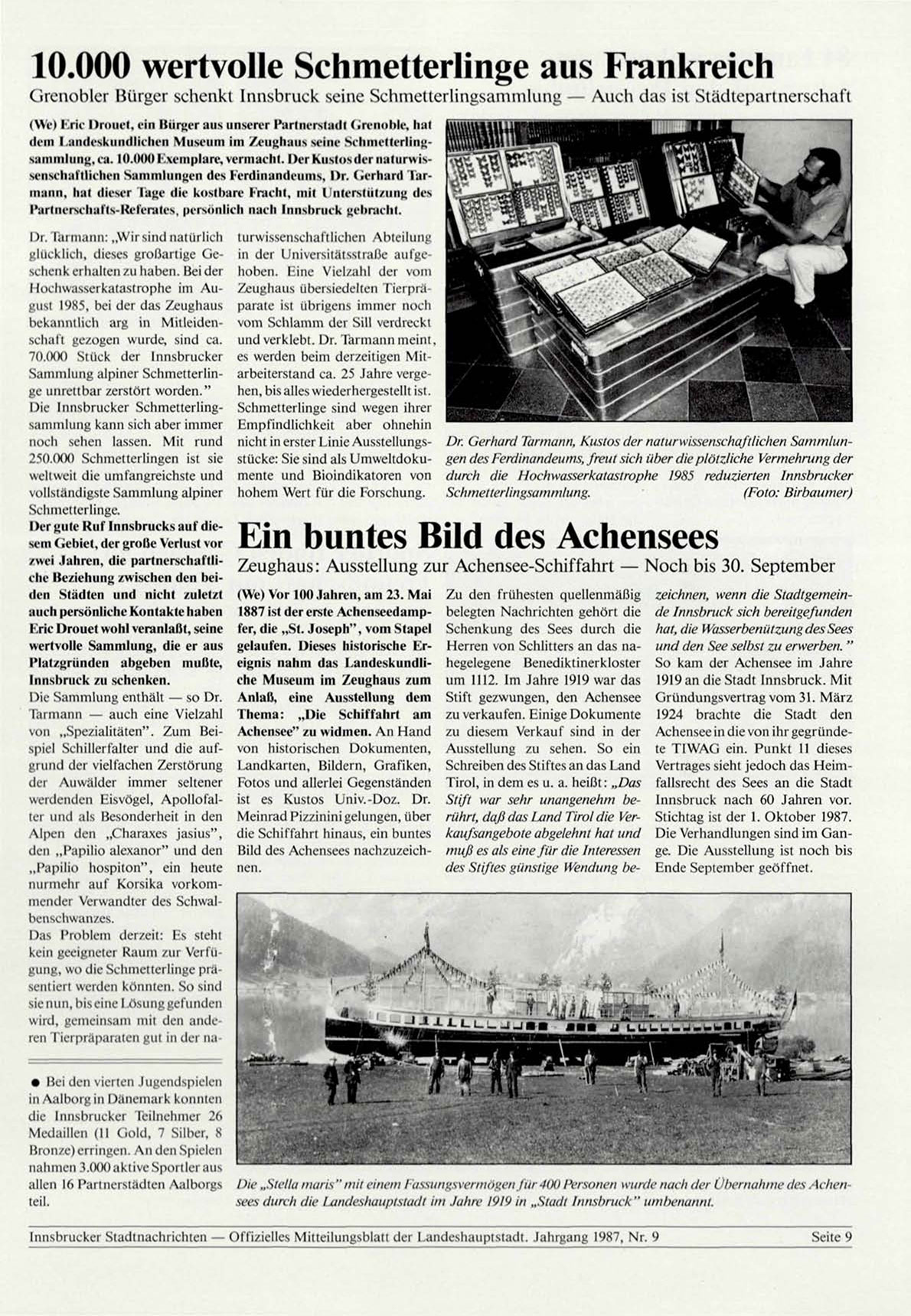 Innsbrucker Stadtnachrichten — Offizielles Mitteilungsblatt der Landeshauptstadt. Jahrgang 1987, Nr. 9