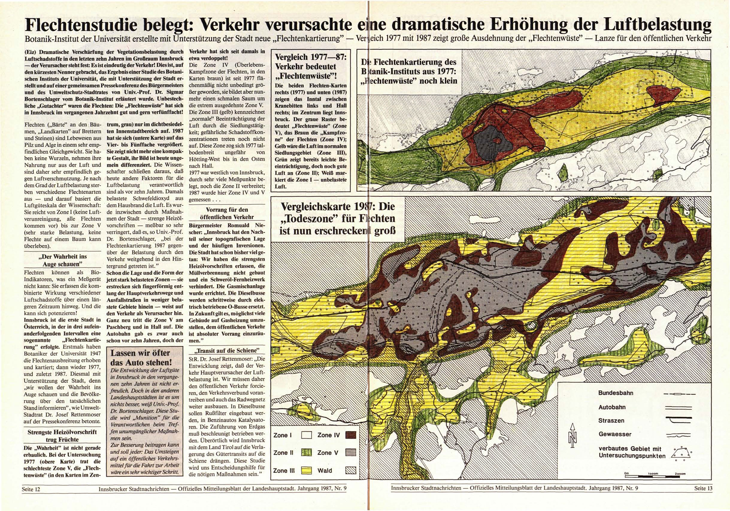 Flechtenkartierung 1987 gegenüber der Belastung durch den