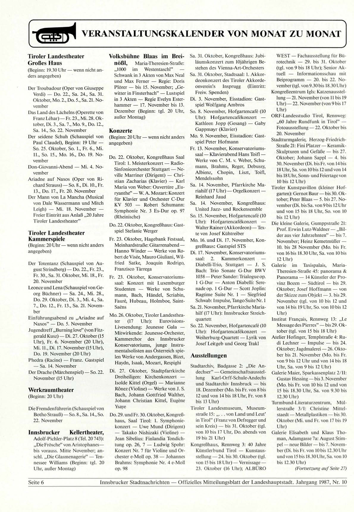 Innsbrucker Stadtnachrichten — Offizielles Mitteilungsblatt der Landeshauptstadt. Jahrgang 1987, Nr. 10