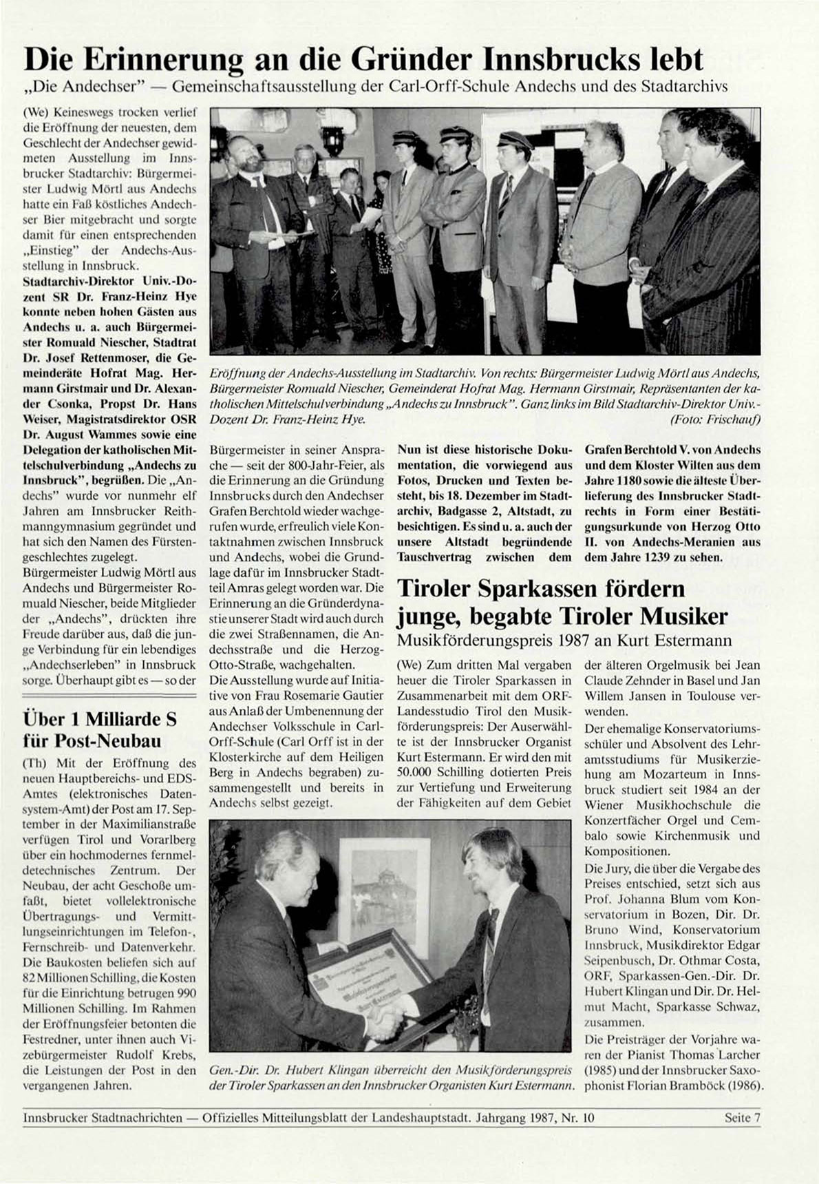 der Tiroler Sparkassen an den Innsbrucker Organisten Kurt Estermann.phonist Horian Bramböck (1986).