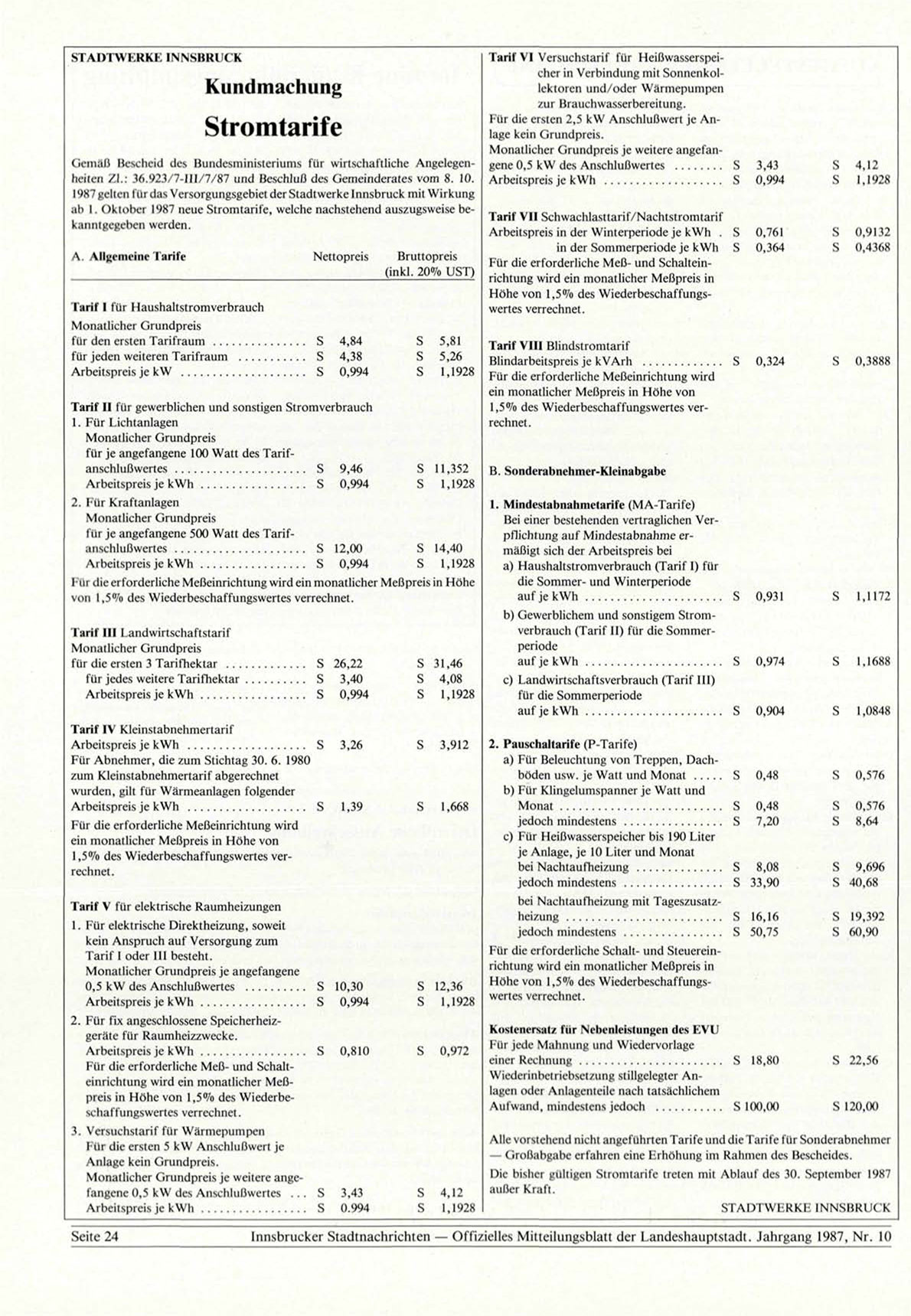 1987 reiten Im das Versorgungsgebiet der Stadtwerke Innsbruck mit Wirkung