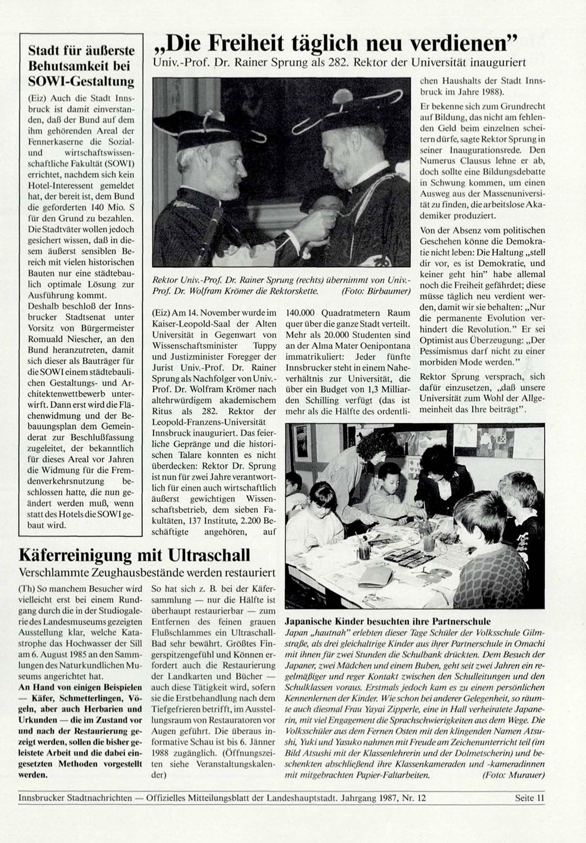 Innsbrucker Stadtnachrichten — Offizielles Mitteilungsblatt der Landeshauptstadt. Jahrgang 1987, Nr. 12