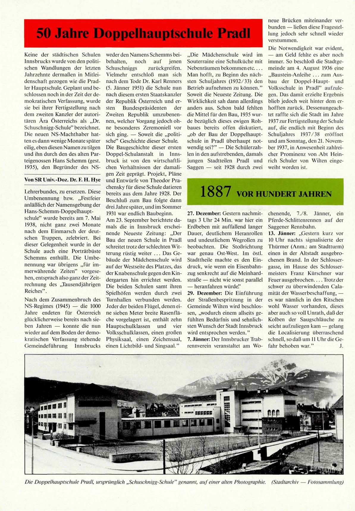Jahrzehnte dermaßen in Mitleidenschaft gezogen wie die Pradler Hauptschule. Geplant und beschlossen noch in der Zeit der demokratischen Verfassung, wurde