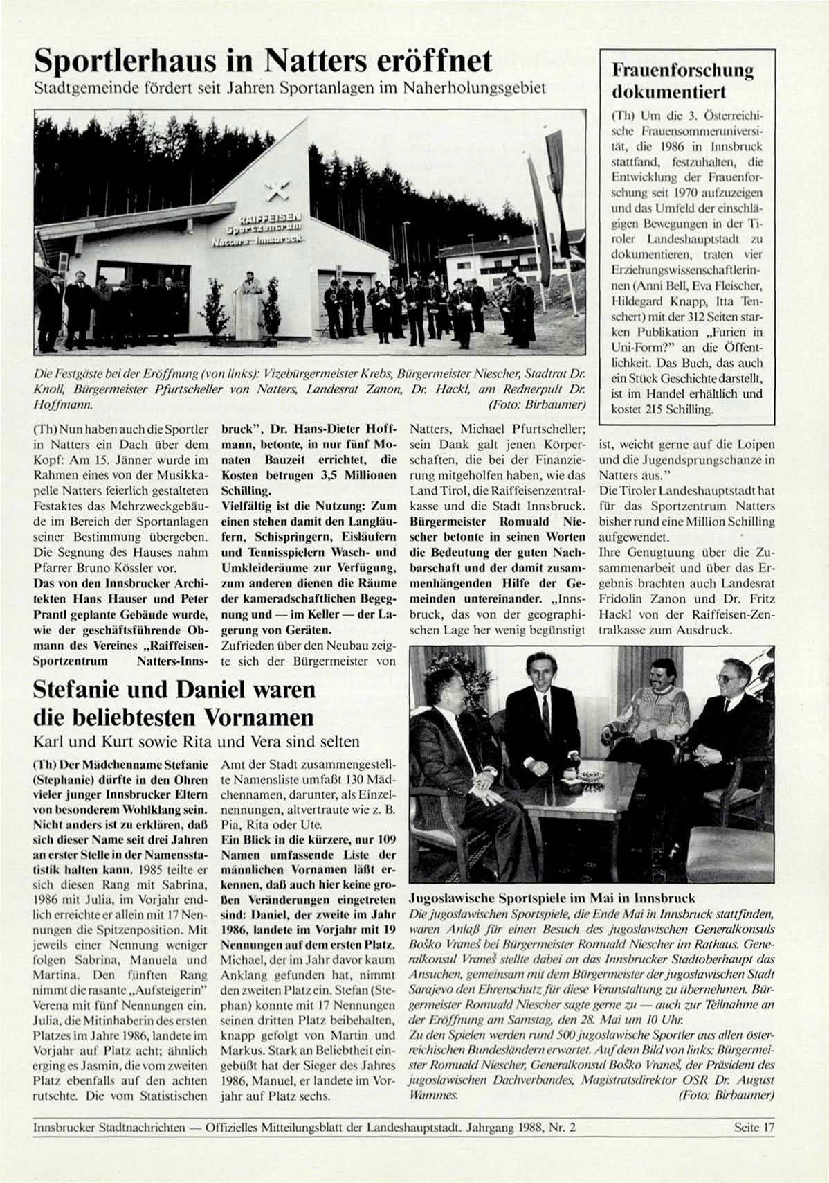Innsbrucker Stadtnachrichten — Offizielles Mitteilungsblatt der Landeshauptstadt. Jahrgang 1988, Nr. 2