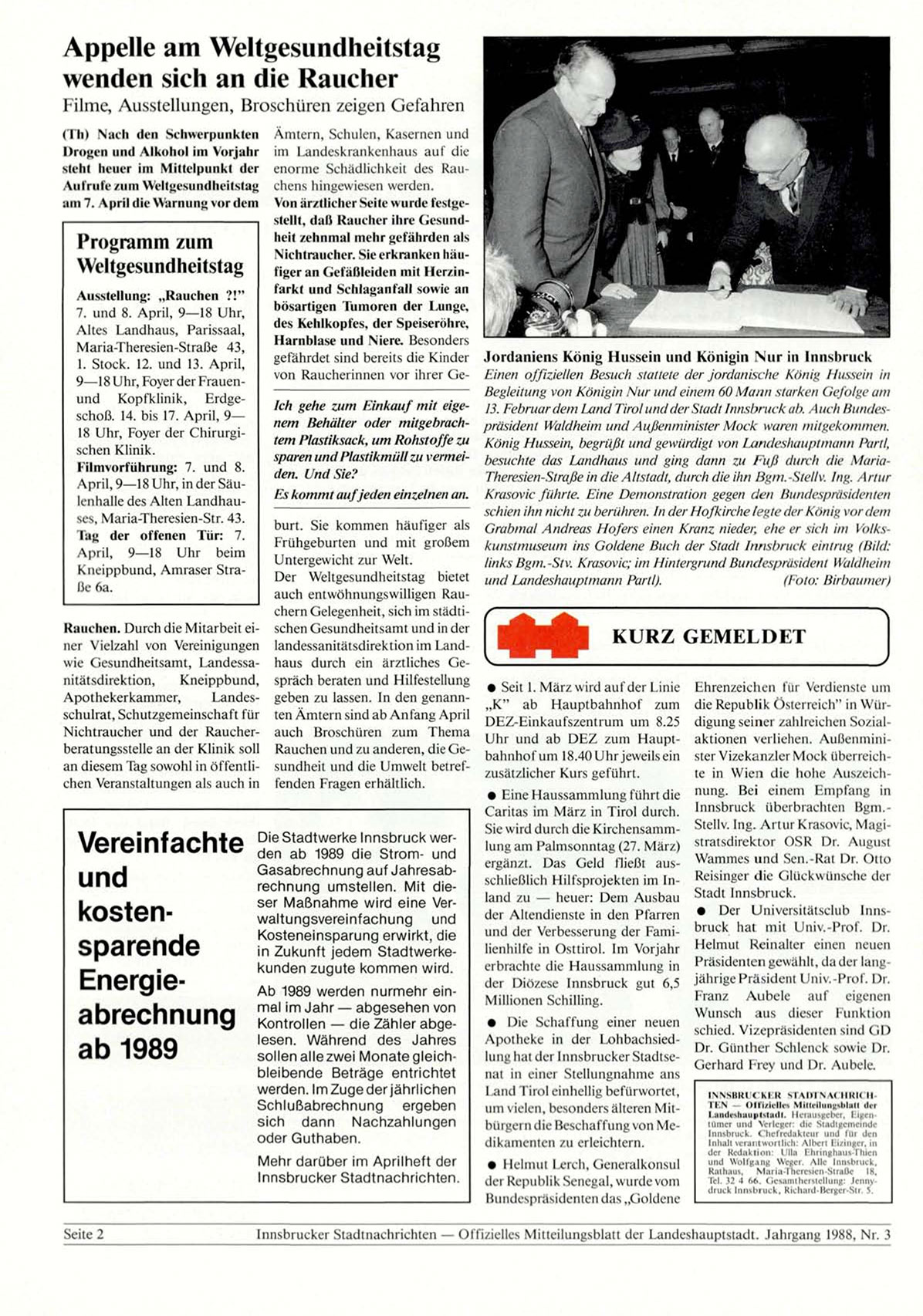 Innsbrucker Stadtnachi ichten — Offizielles Mitteilungsblatt der Landeshauptstadt. Jahrgang 1988, Nr. 3