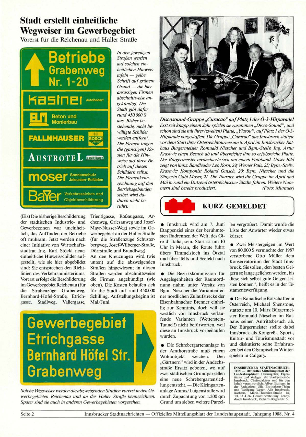 Innsbrucker Stadtnachrichten — Offizielles Mitteilungsblatt der Landeshauptstadt. Jahrgang 1988, Nr. 4