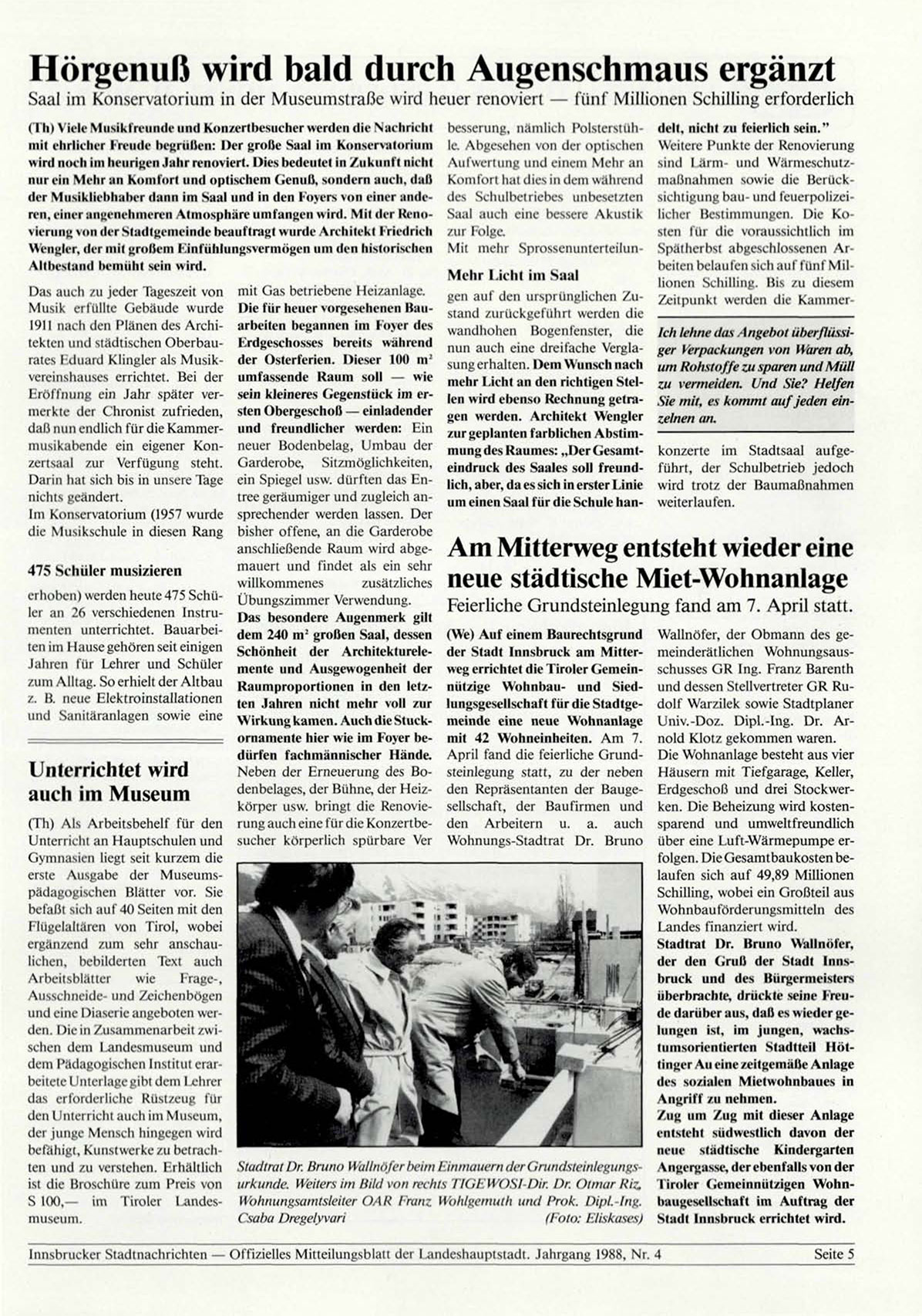 Innsbrucker Stadtnachrichten — Offizielles Mitteilungsblatt der Landeshauptstadt. Jahrgang 1988, Nr. 4