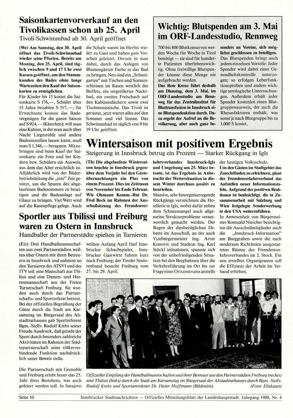 Innsbrucker Stadtnachrichten — Offizielles Mitteilungsblatt der Landeshauptstadt. Jahrgang 1988, Nr. 4