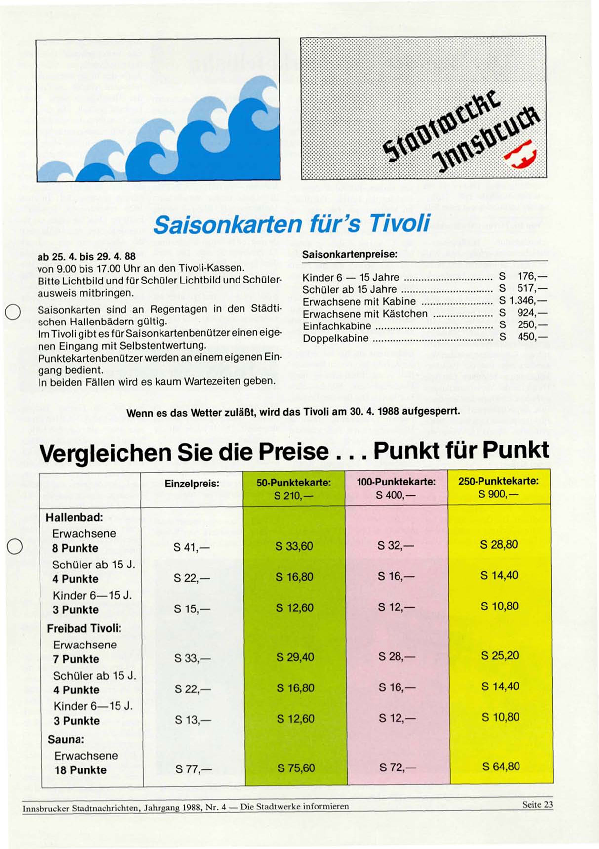 Innsbrucker Stadtnachrichten, Jahrgang 1988, Nr. 4 — Die Stadtwerke informieren