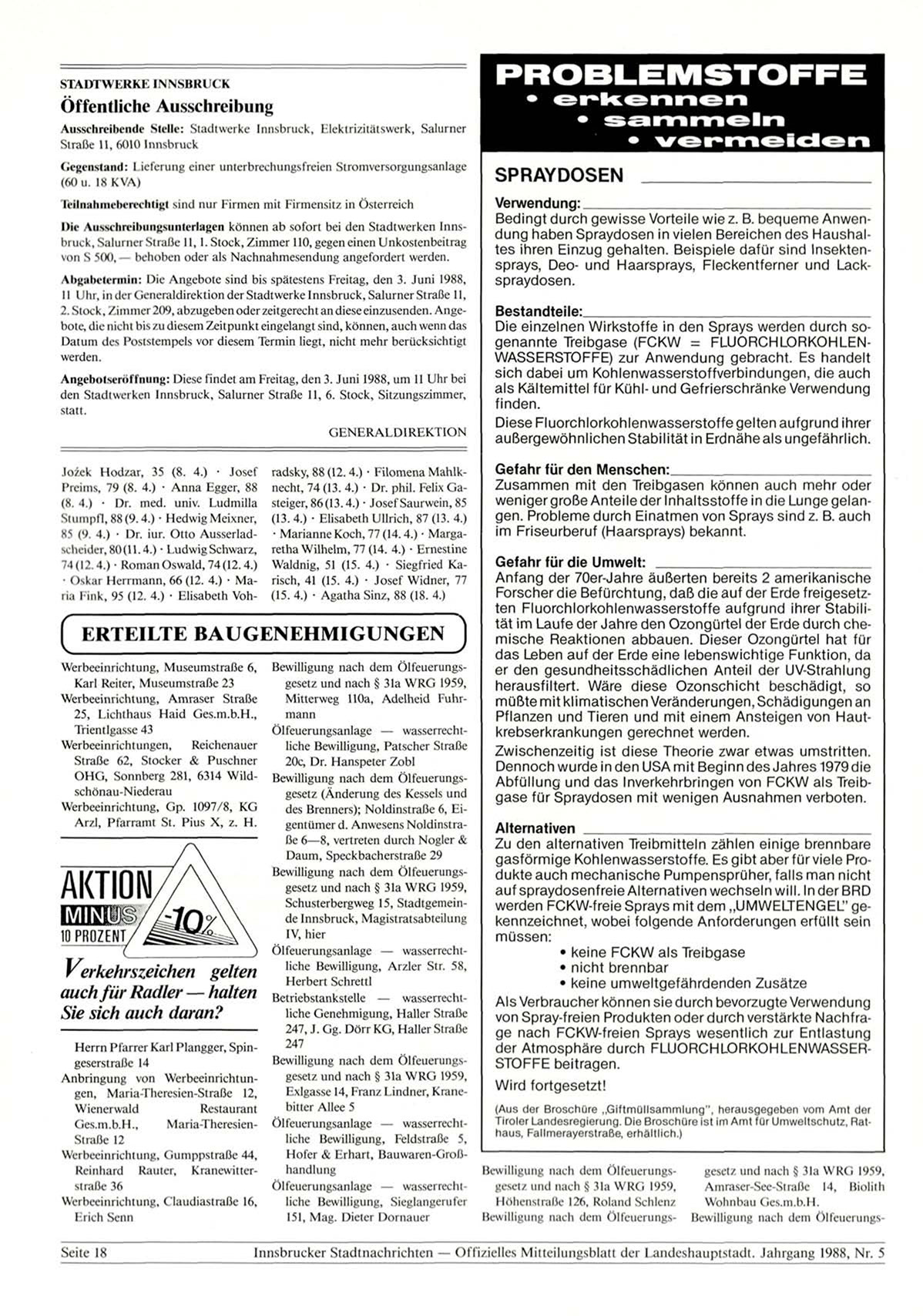 Schusterbergweg 15, Stadtgemeinwerden FCKW-freie Sprays mit dem „UMWELTENGEL" gede Innsbruck, Magistratsabteilung