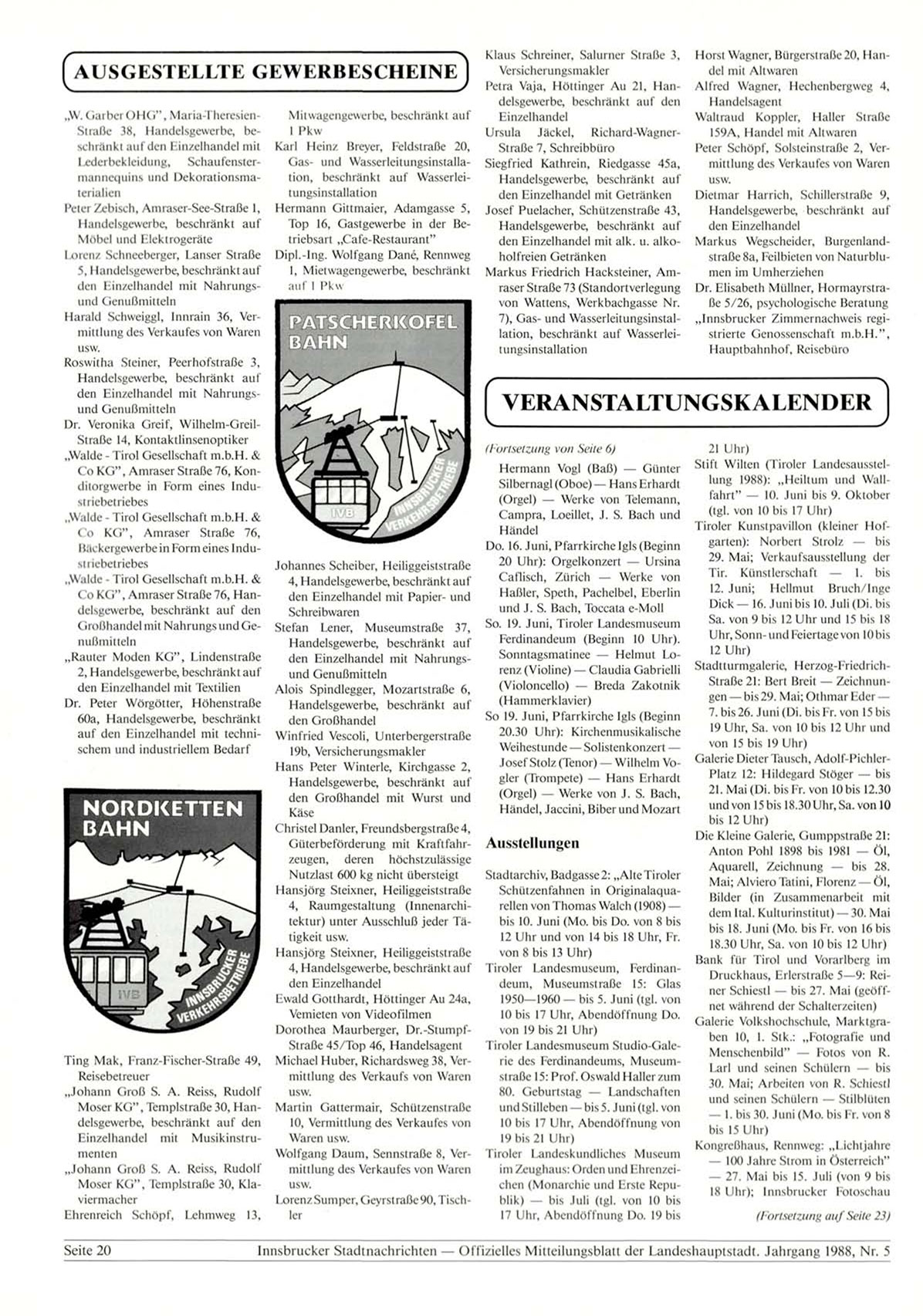 Innsbrucker Stadtnachrichten — Offizielles Mitteilungsblatt der Landeshauptstadt. Jahrgang 1988, Nr. 5