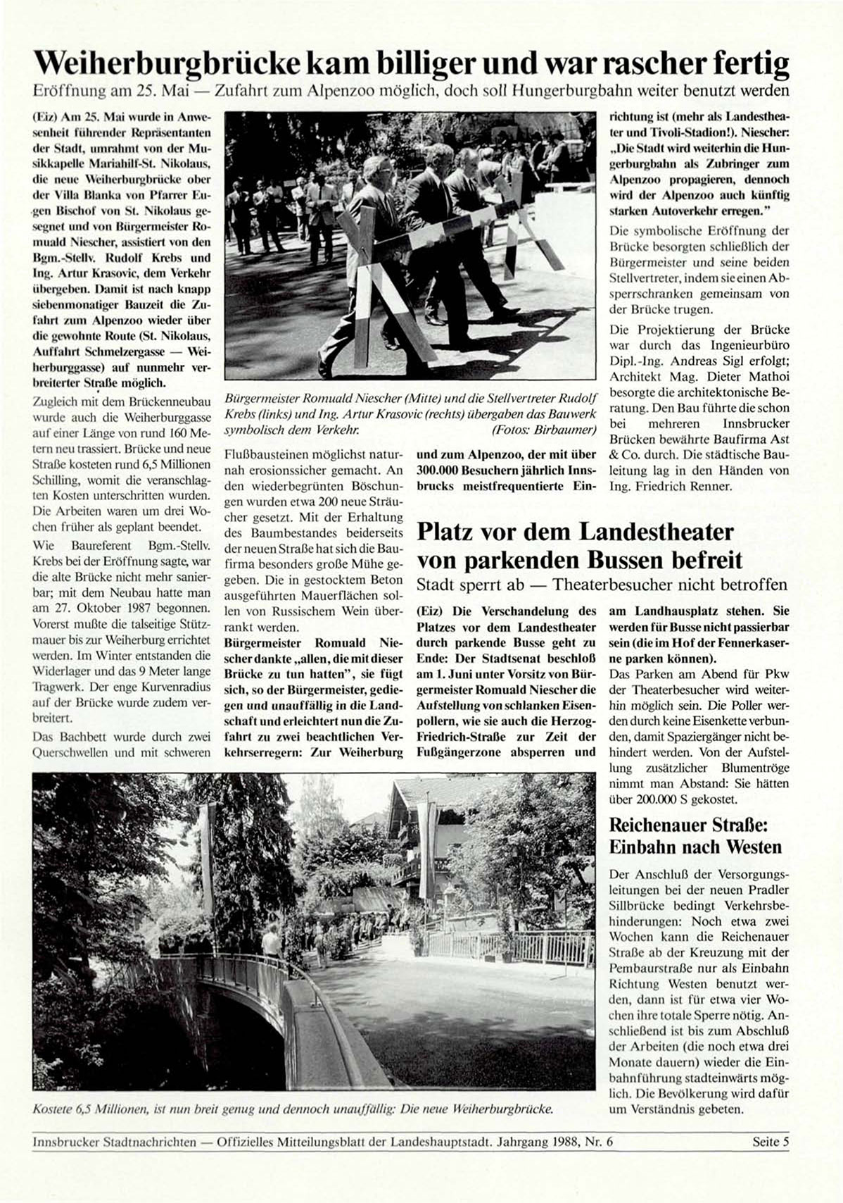 Innsbrucker Stadtnachrichten — Offizielles Mitteilungsblatt der Landeshauptstadt. Jahrgang 1988, Nr. 6