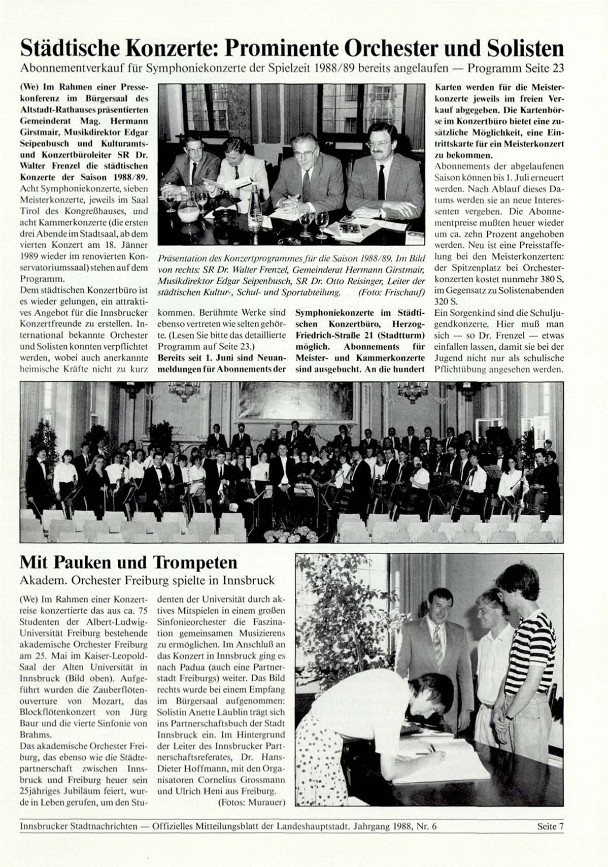 Musikdirektor Edgar Seipenbusch, SR Dr. Otto Reisinger, Leiter der konzerten kostet nunmehr 380 S,