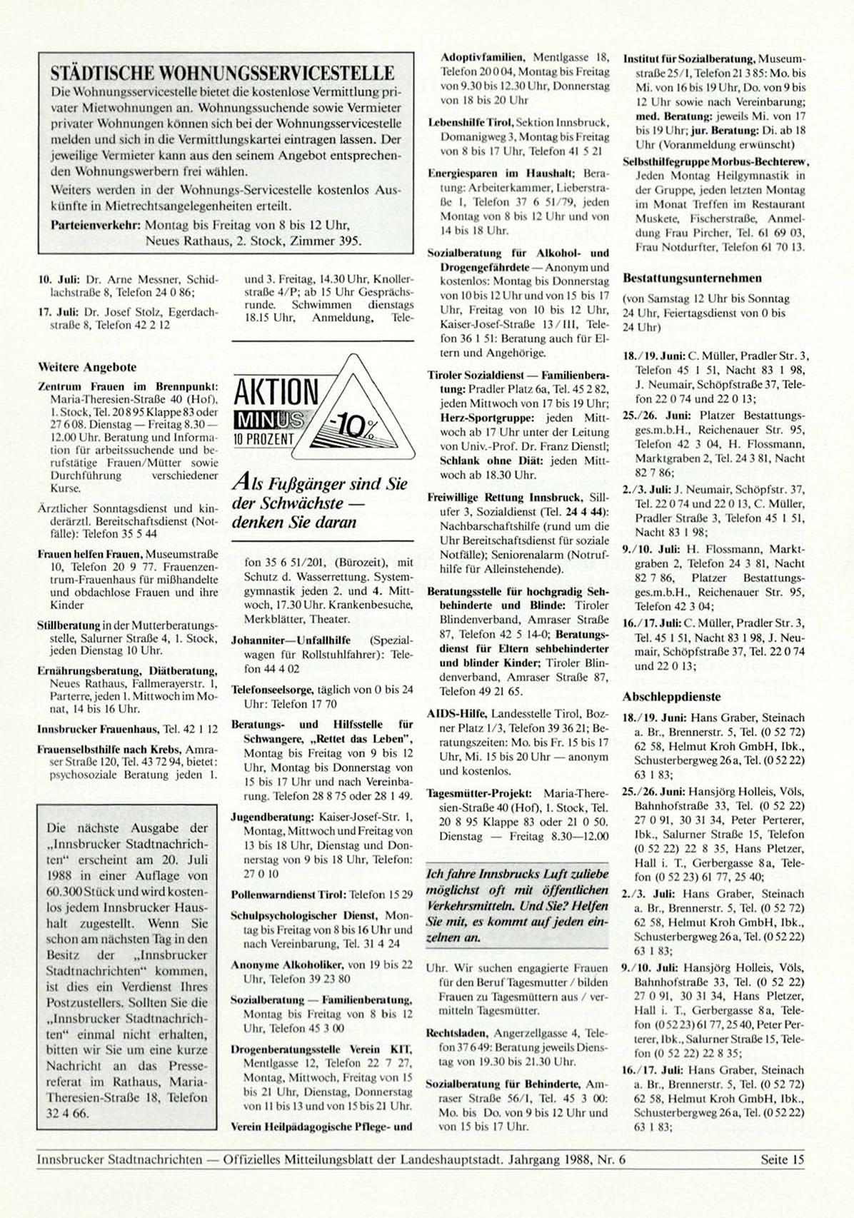 Innsbrucker Stadtnachrichten — Offizielles Mitteilungsblatt der Landeshauptstadt. Jahrgang 1988, Nr. 6