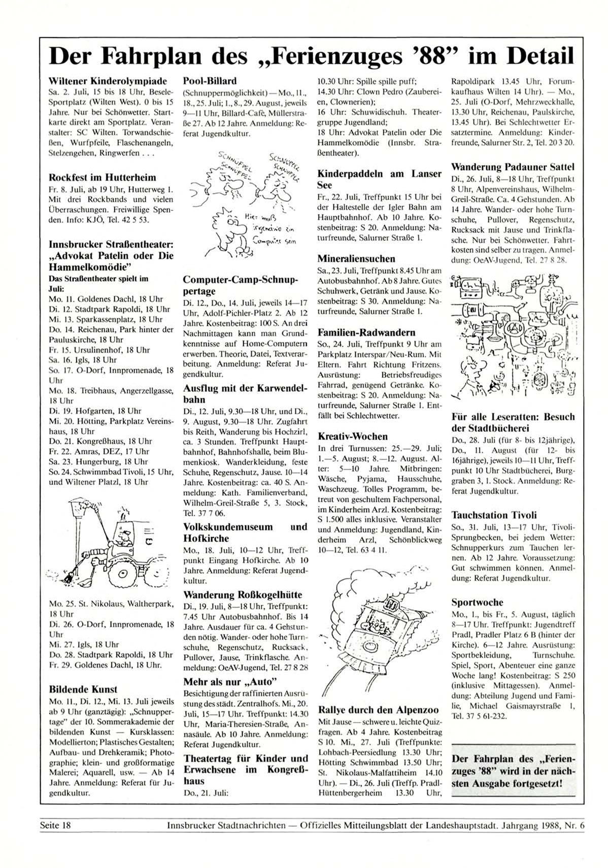 Innsbrucker Stadtnachrichten — Offizielles Mitteilungsblatt der Landeshauptstadt. Jahrgang 1988, Nr. 6
