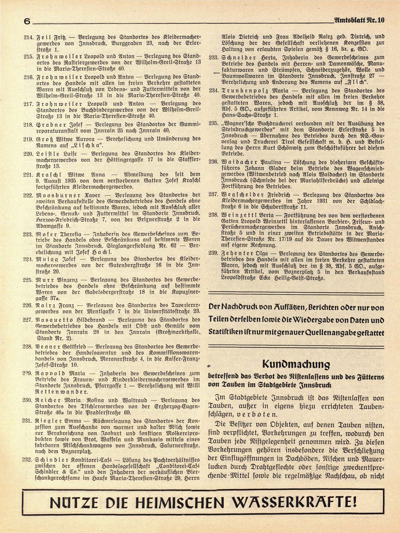 228. Ve a a er Gottfried — Verlegung des Standortes des Gewerbebetriebes der Handelsaaentur und des Kommissionswarenliandels von Innsbruck, Meranerstraße 4. in die Kaiser-FranzIosef-Straße 10.