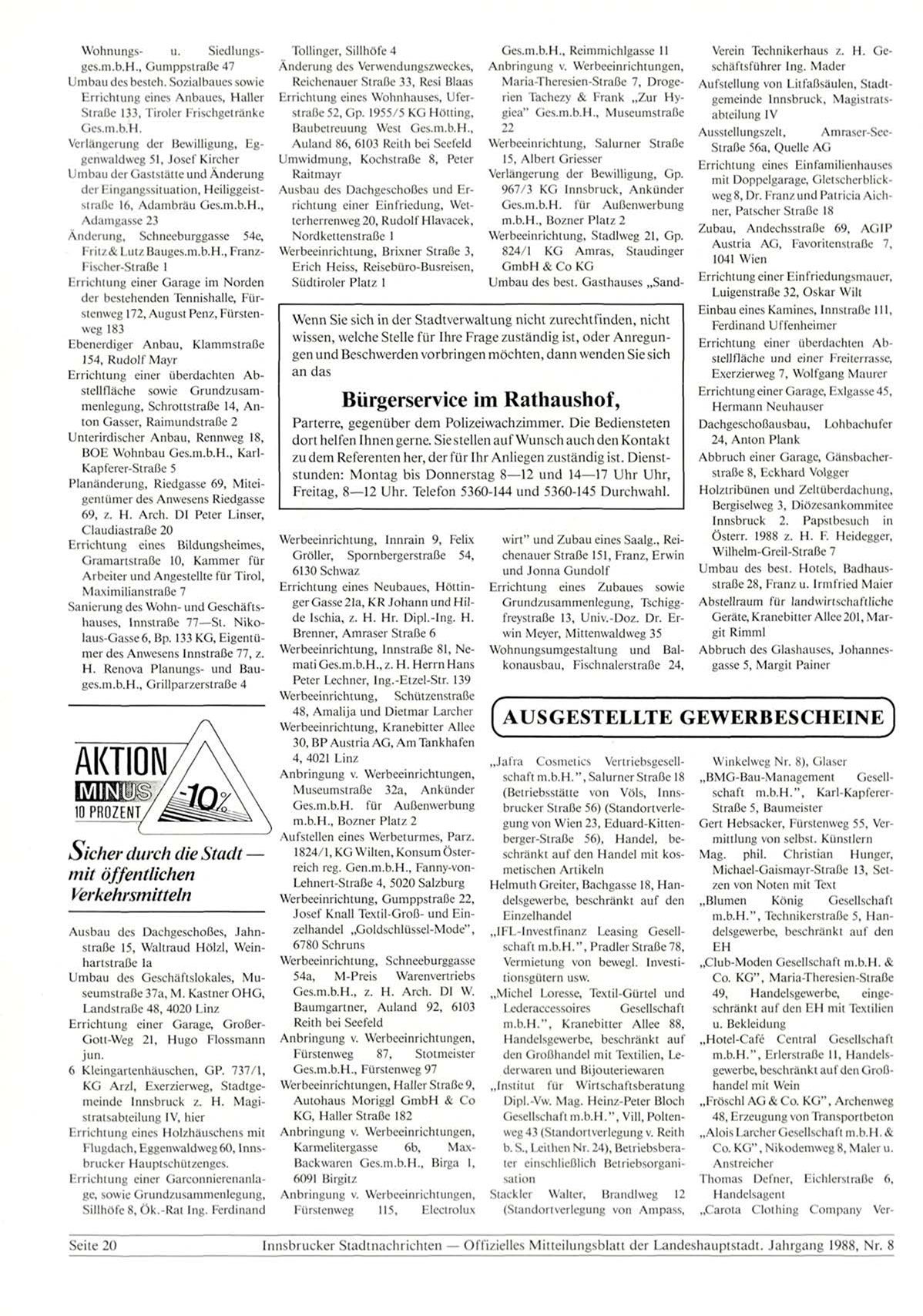 Innsbrucker Stadtnachrichten — Offizielles Mitteilungsblatt der Landeshauptstadt. Jahrgang 1988, Nr. 8