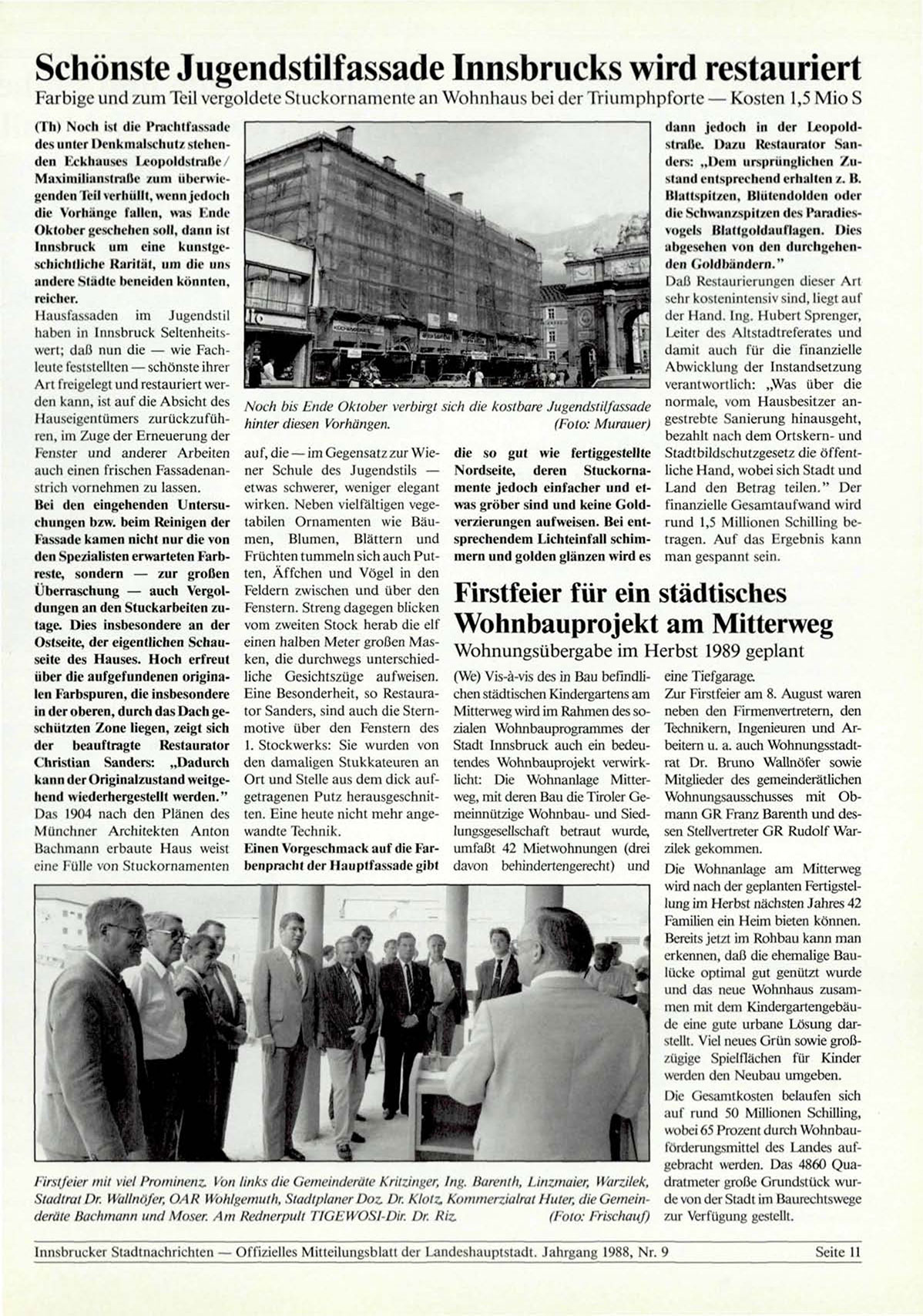Innsbrucker Stadtnachrichten — Offizielles Mitteilungsblatt der Landeshauptstadt. Jahrgang 1988, Nr. 9