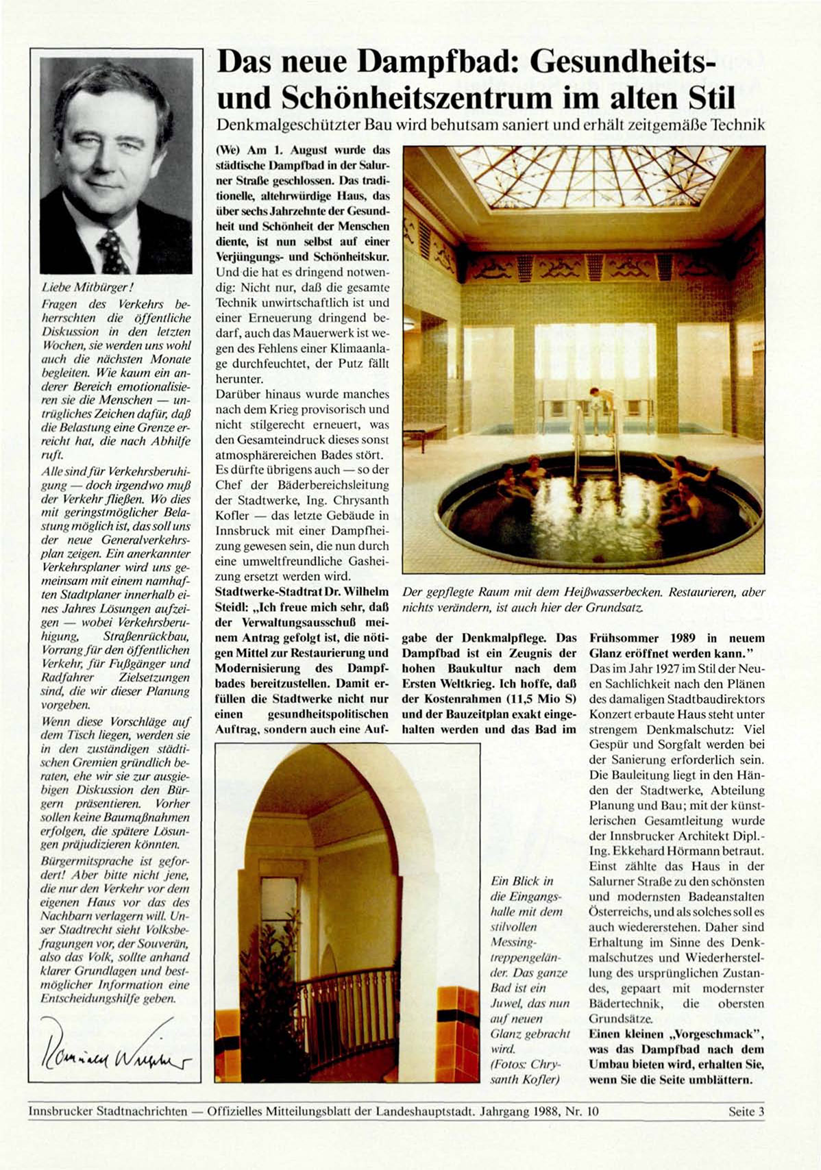 Innsbrucker Stadtnachrichten — Offizielles Mitteilungsblatt der Landeshauptstadt. Jahrgang 1988, Nr. 10