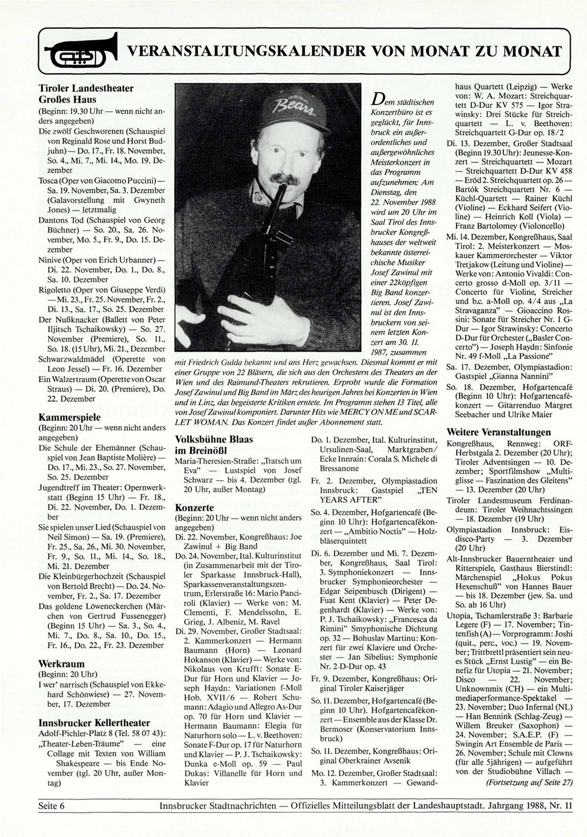Innsbrucker Stadtnachrichten — Offizielles Mitteilungsblatt der Landeshauptstadt. Jahrgang 1988, Nr. 11