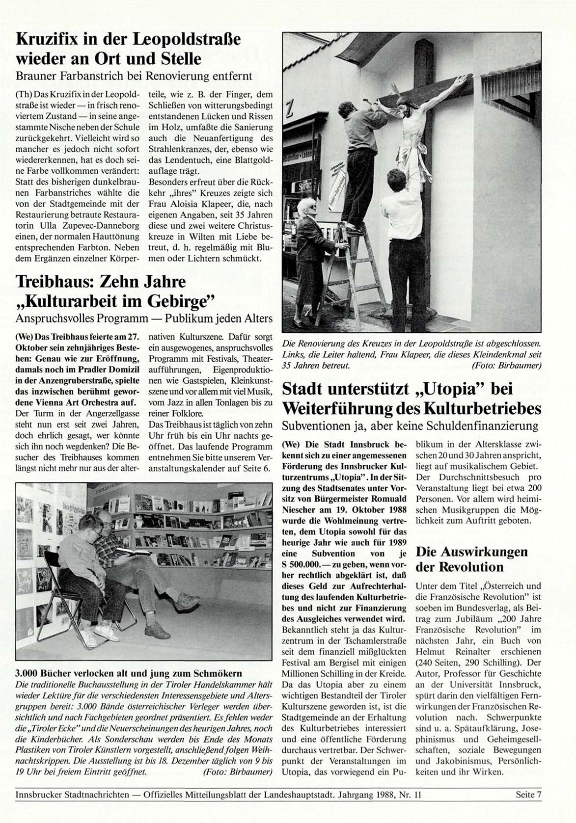 Innsbrucker Stadtnachrichten — Offizielles Mitteilungsblatt der Landeshauptstadt. Jahrgang 1988, Nr. 11