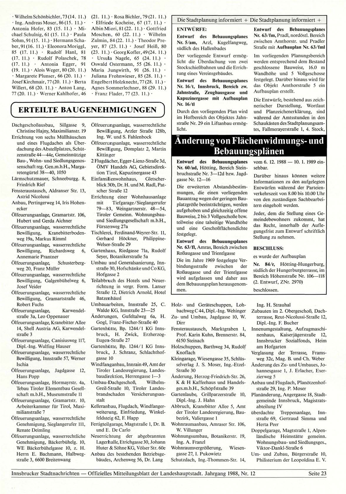 Innsbrucker Stadtnachrichten — Offizielles Mitteilungsblatt der Landeshauptstadt. Jahrgang 1988, Nr. 12