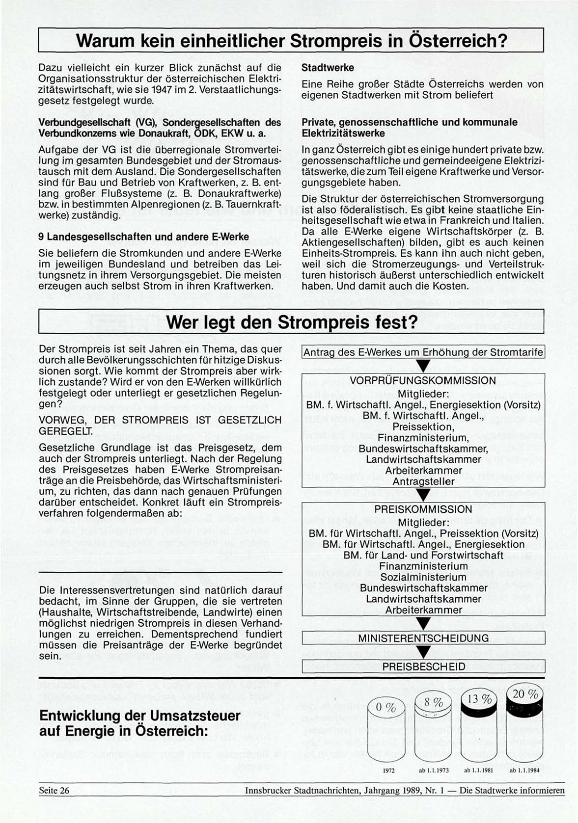 Innsbrucker Stadtnachrichten, Jahrgang 1989, Nr. 1 — Die Stadtwerke informieren