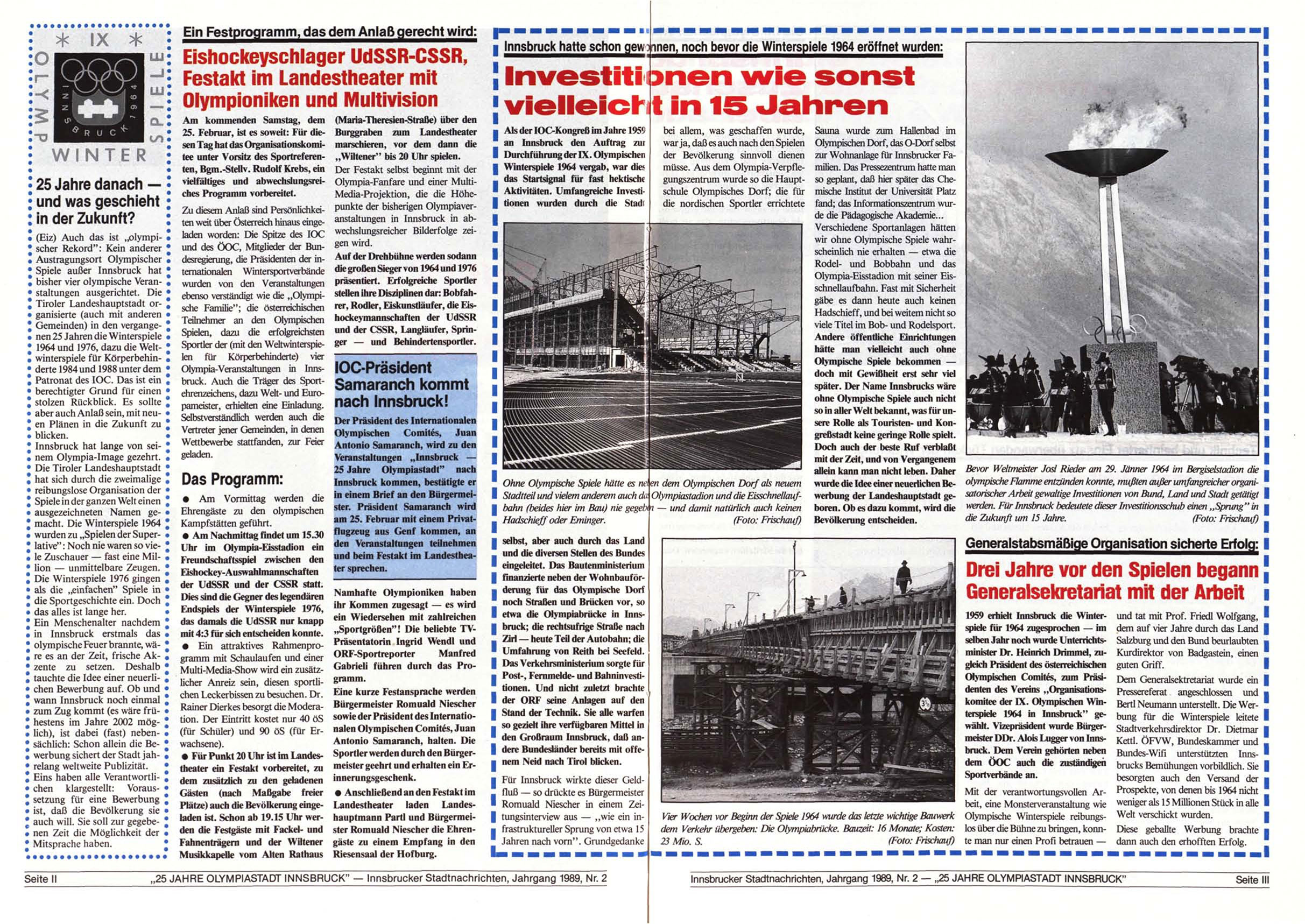 Innsbrucker Stadtnachrichten, Jahrgang 1989, Nr. 2 — „25 JAHRE OLYMPIASTADT INNSBRUCK"