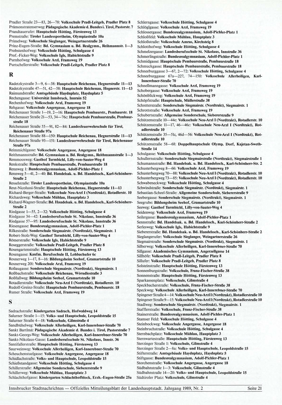 Innsbrucker Stadtnachrichten — Offizielles Mitteilungsblatt der Landeshauptstadt. Jahrgang 1989, Nr. 2