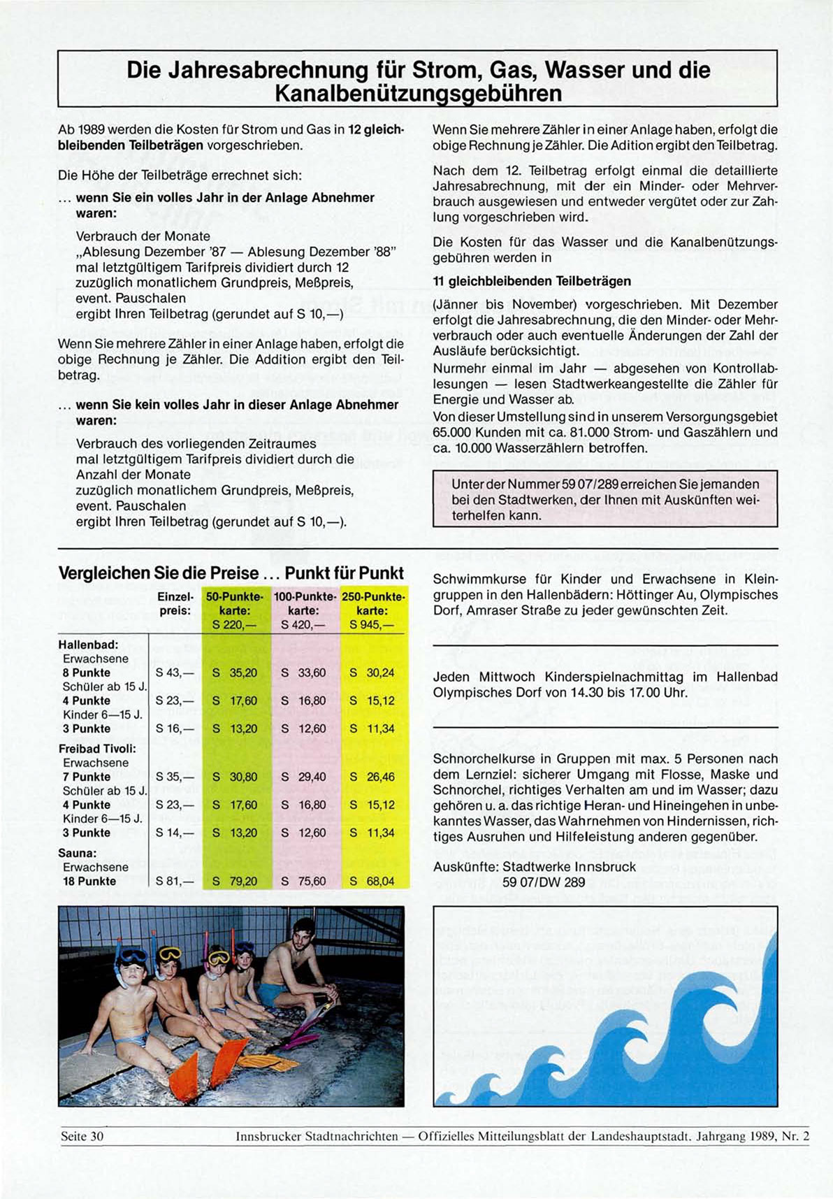 Innsbrucker Stadtnachrichten — Offizielles Mitteilungsblatt der Landeshauptstadt. Jahrgang 1989, Nr. 2