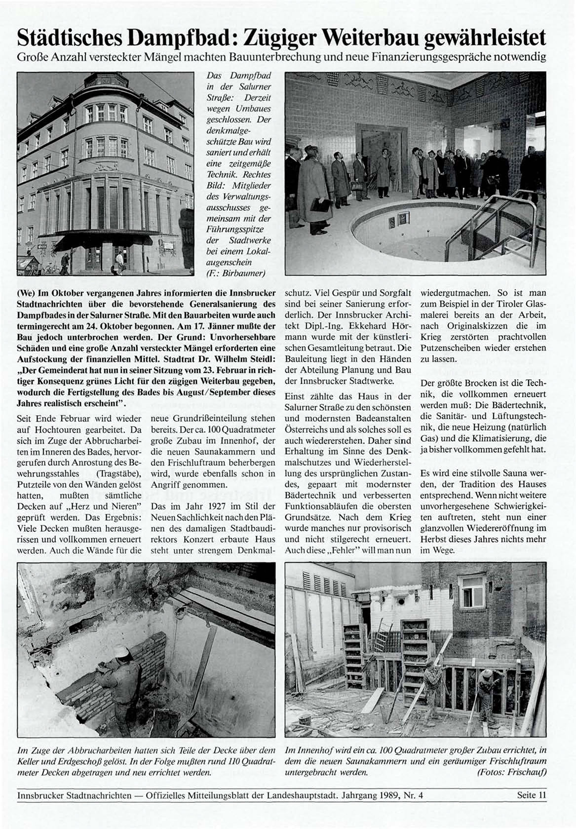 Innsbrucker Stadtnachrichten — Offizielles Mitteilungsblatt der Landeshauptstadt. Jahrgang 1989, Nr. 4
