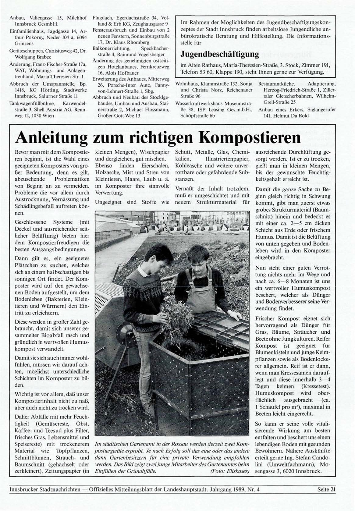 Innsbrucker Stadtnachrichten — Offizielles Mitteilungsblatt der Landeshauptstadt. Jahrgang 1989, Nr. 4
