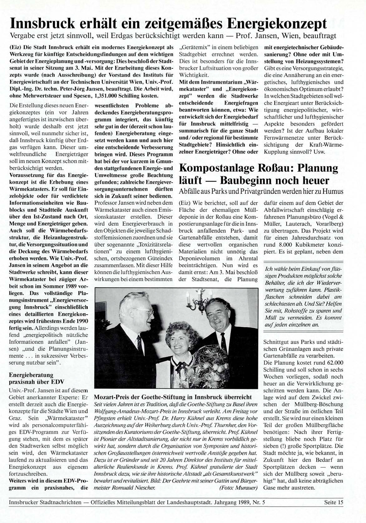 Innsbrucker Stadtnachrichten — Offizielles Mitteilungsblatt der Landeshauptstadt. Jahrgang 1989, Nr. 5