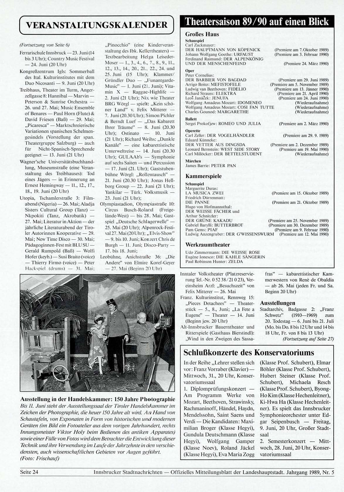 Innsbrucker Stadtnachrichten — Offizielles Mitteilungsblatt der Landeshauptstadt. Jahrgang 1989, Nr. 5