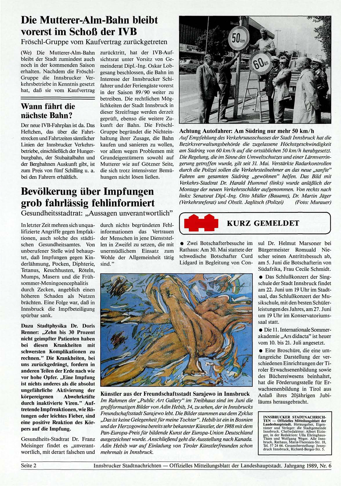 Innsbrucker Stadtnachrichten — Offizielles Mitteilungsblatt der Landeshauptstadt. Jahrgang 1989, Nr. 6